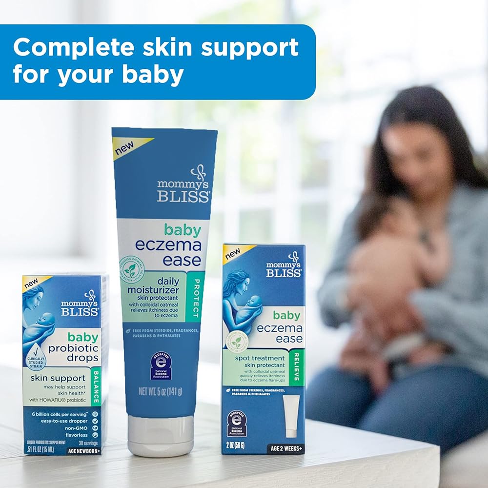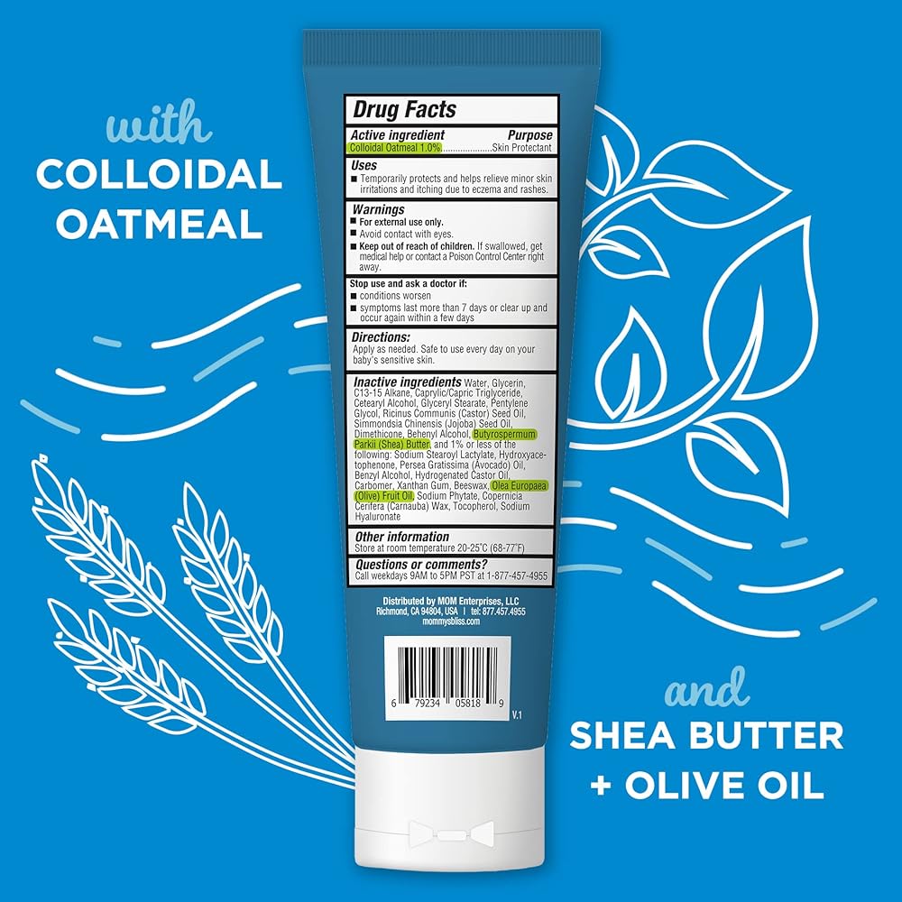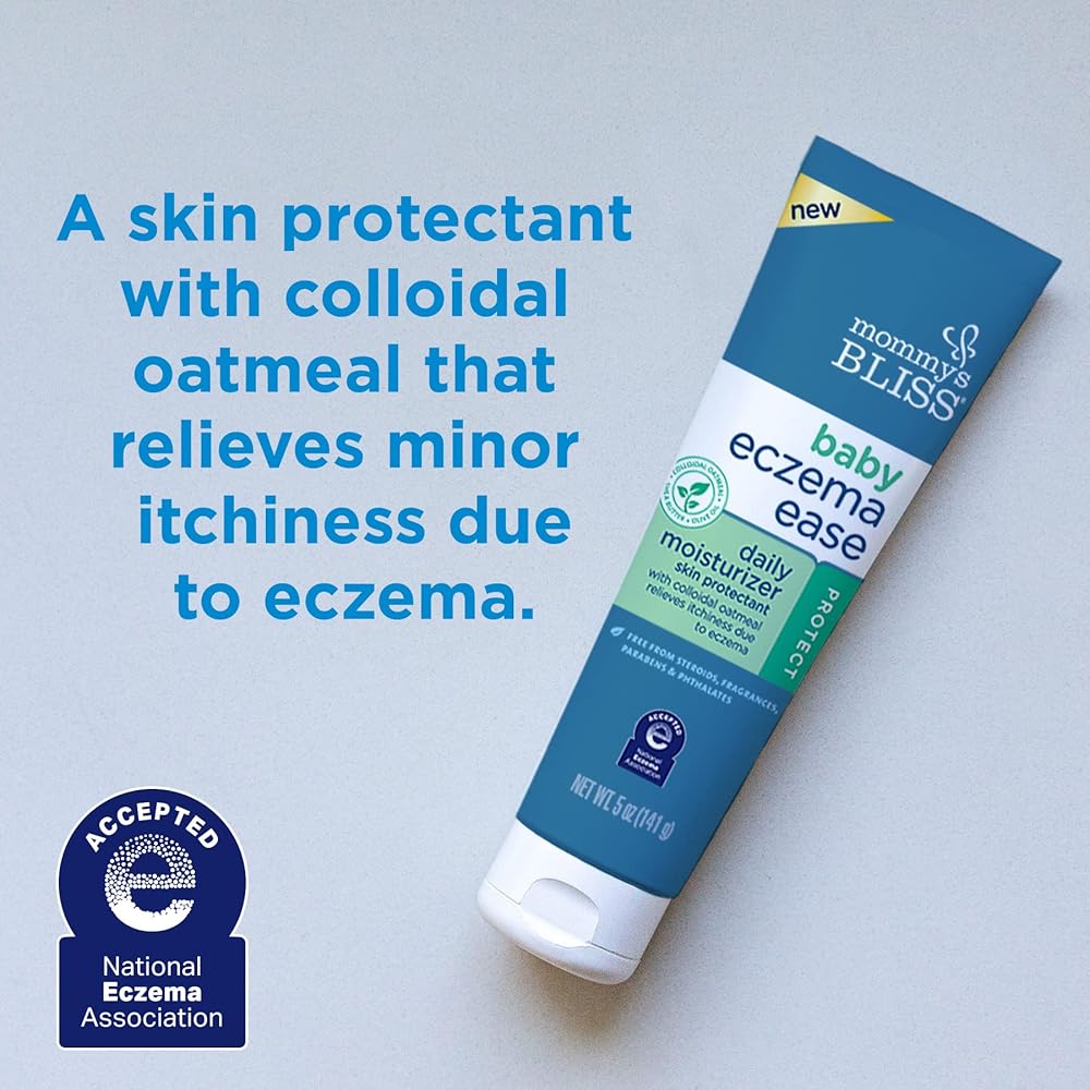مرطب Mommy's Bliss Eczema Ease اليومي مع دقيق الشوفان الغروي يحمي بشكل مؤقت ويساعد على تخفيف تهيج الجلد الطفيف والحكة بسبب الأكزيما والطفح الجلدي.