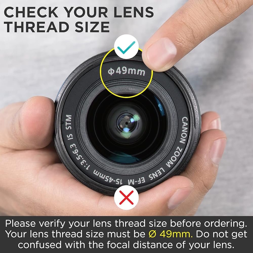 ملاحظة: يرجى التحقق من حجم مؤشر ترابط عدسة الكاميرا قبل الطلب. هذا محول الزاوية الواسعة متوافق مع عدسات 55 ملم فقط. تختلف أحجام الفرق بغض النظر عن العلامة التجارية للكاميرا أو الطراز. سيتم تمييز حجم مؤشر ترابط العدسة الخاص بك في مكان ما على الحجم.
