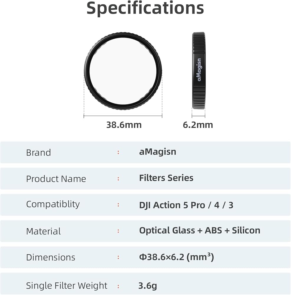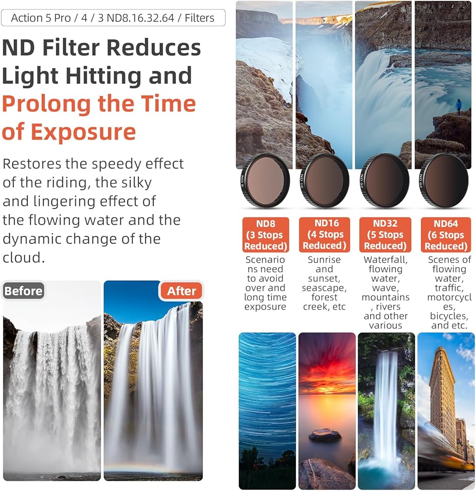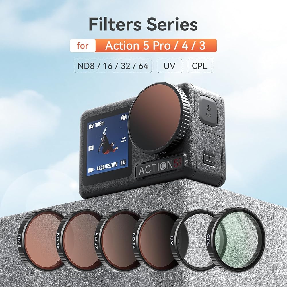 Waterproof Filter Set for DJI OSMO Action5Pro/4/3 Optical Glass Filter ND8/16/32 Neutral Density and CPL Polarizing Optical Filters for Action5Pro/4/3 Lens