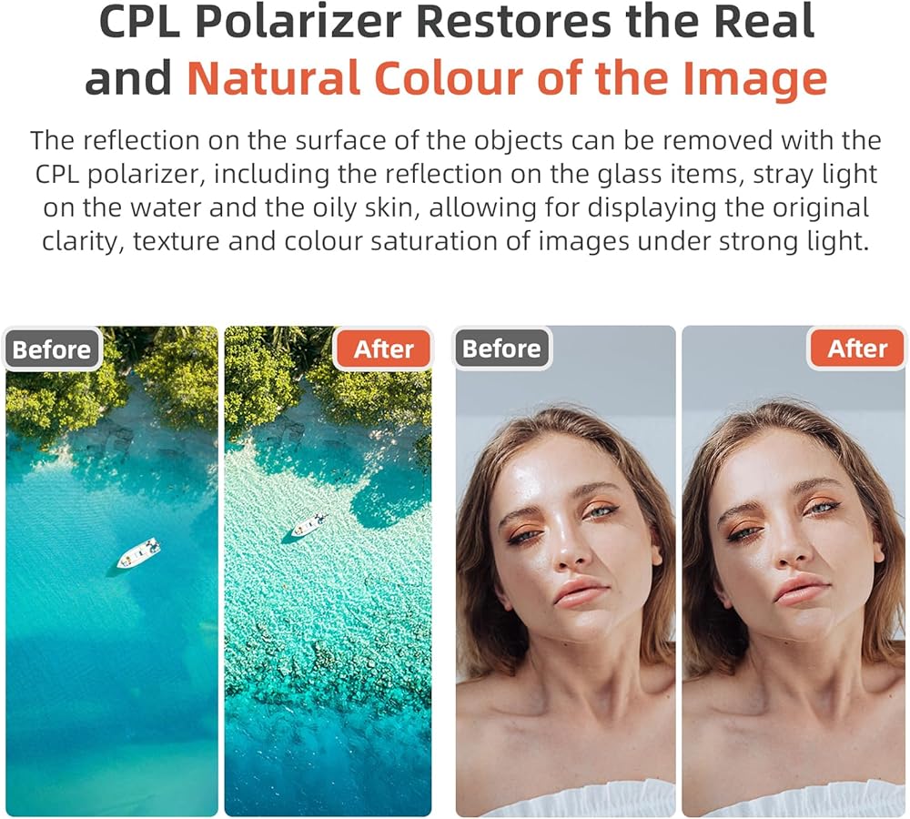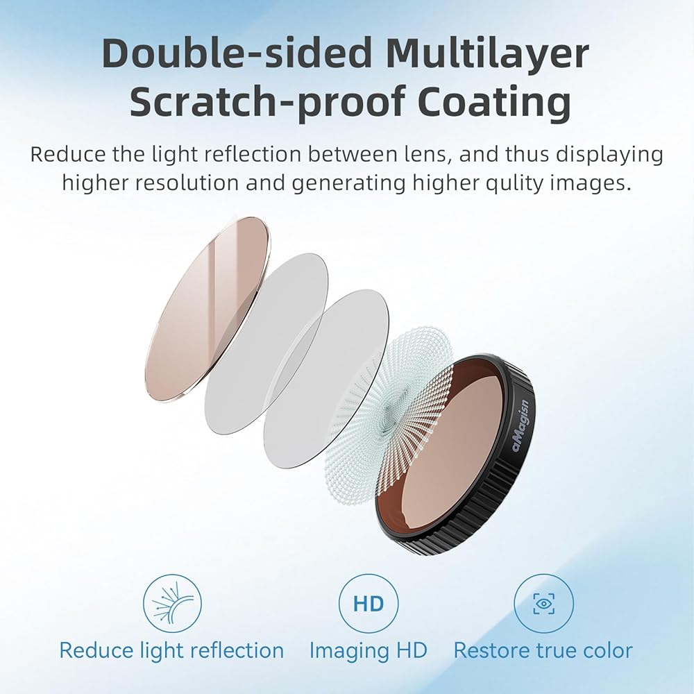 【Shooting withoutDark Field;Crystal clear imaging】 The filter won't block the field of view of the host lens, producing crystal clear images without dark field.