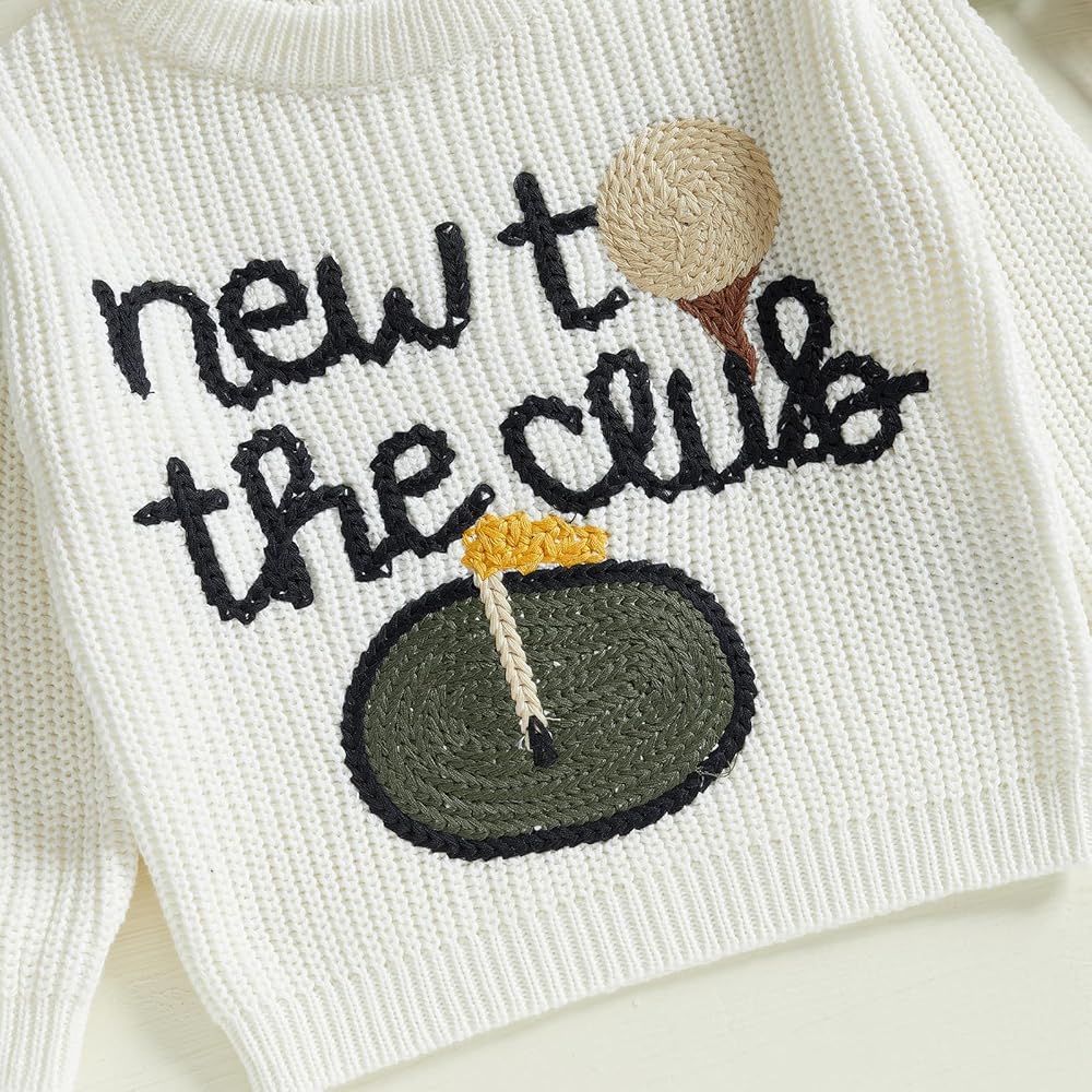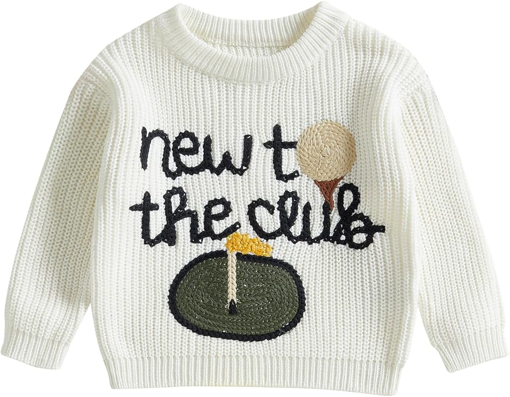 • Features: Cute baby girl sweaters,baby boy golf sweater; Long sleeves, crew-neck, golf and NEW TO THE CLUB embroidery pattern; Toddler knit sweater is loose fitting; Cute and fashionable clothing
