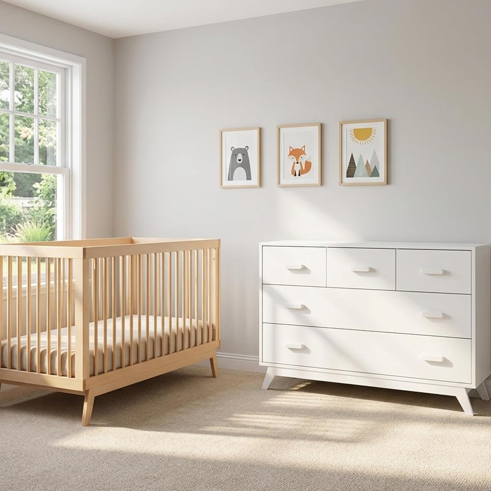 • خزانة ملابس وافرة: يوفر Soho 5 Draver Dresser أدراجًا عميقة وسلسة تنظيمية لملابس الأطفال ، الحفاضات ، الألعاب وتخزين الحضانة اليومية.