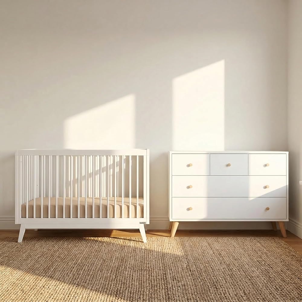 التصميم الخالد الذي يناسب أي حضانة: تتميز مجموعة السرير والفصح البيضاء/الطبيعية بمجموعة نظيفة ومظهر دافئ وحديداً يمتزج بسهولة مع أي ديكور حضانة.