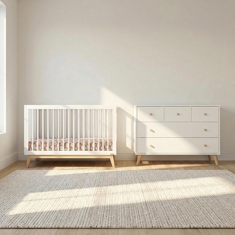التصميم الخالد الذي يناسب أي حضانة: تتميز مجموعة السرير والفصح البيضاء/الطبيعية بمجموعة نظيفة ومظهر دافئ وحديداً يمتزج بسهولة مع أي ديكور حضانة.