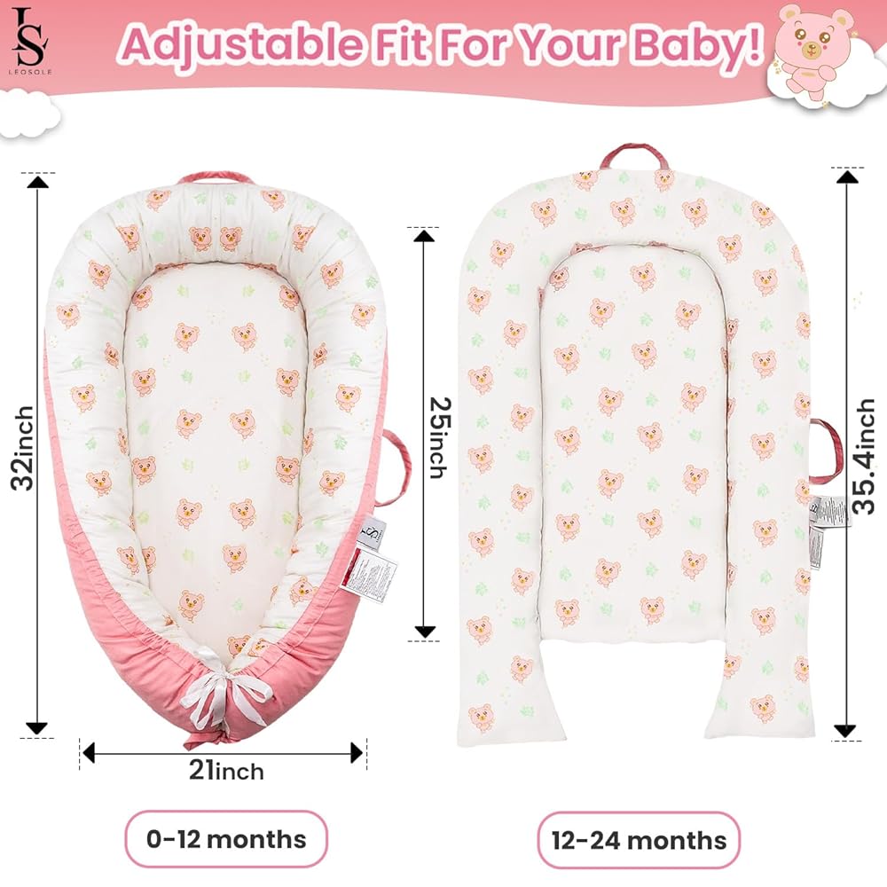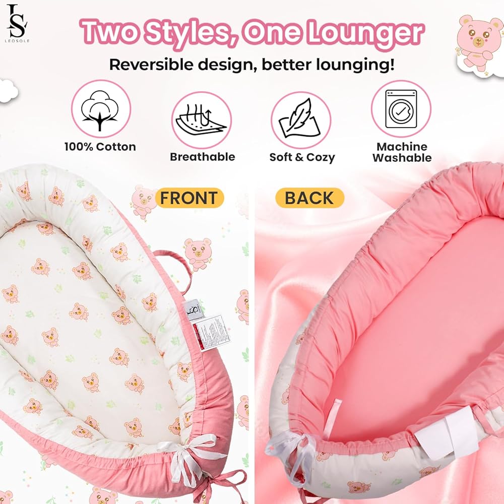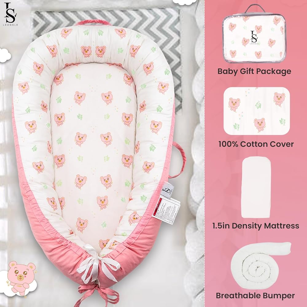 𝗟𝗲𝗼𝘀𝗼𝗹𝗲 𝗕𝗹𝘂𝘀𝗵 𝗕𝗲𝗮𝗿 𝗣𝗶𝗻𝗸 𝐁𝐚𝐛𝐲 𝗟𝗼𝘂𝗻𝗴𝗲𝗿 𝗣𝗶𝗹𝗹𝗼𝘄: معروضة في حزمة هدايا الطفل المصممة بشكل جميل. تشتمل هذه المجموعة على غطاء قطني فائق النحافة ، بنسبة 100 ٪ مع تصميم لطيف ، مصد كثيف لحماية 360 درجة ، ومرتبة تمت ترقيتها تدعم ظهر طفلك مع تعزيز تطور العمود الفقري الصحي.
