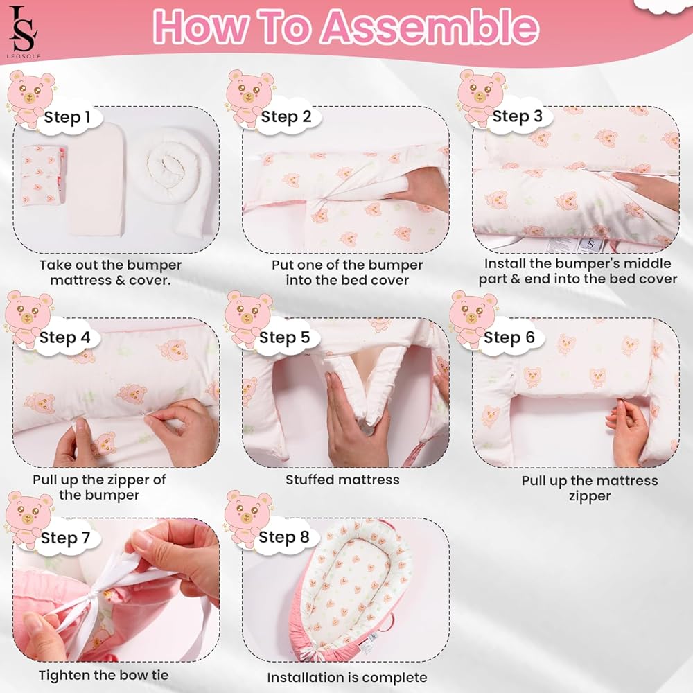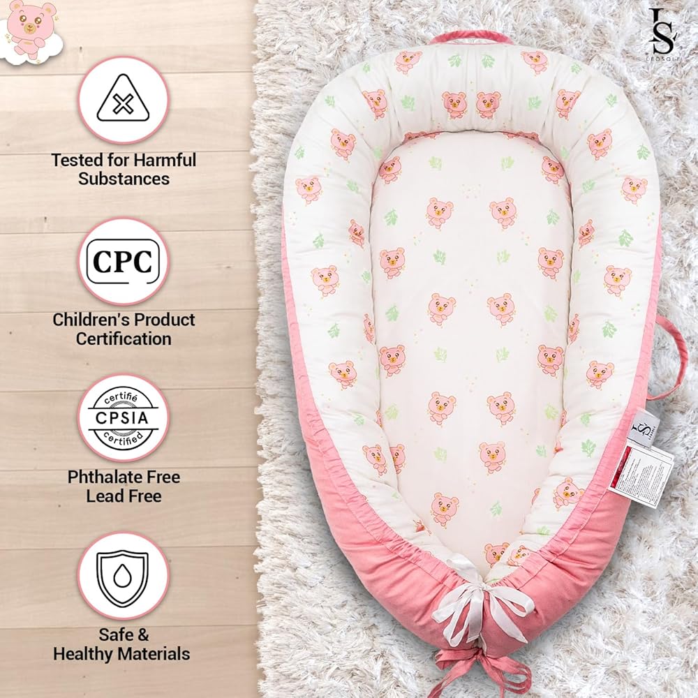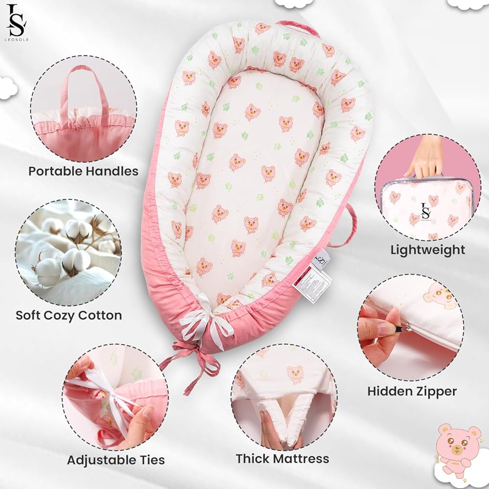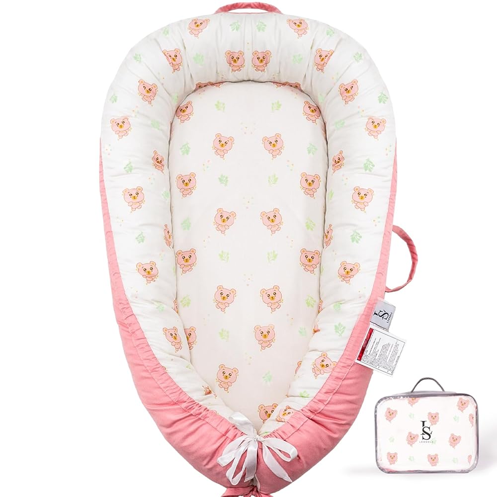 𝗟𝗲𝗼𝘀𝗼𝗹𝗲 𝗕𝗹𝘂𝘀𝗵 𝗕𝗲𝗮𝗿 𝗣𝗶𝗻𝗸 𝐁𝐚𝐛𝐲 𝗟𝗼𝘂𝗻𝗴𝗲𝗿 𝗣𝗶𝗹𝗹𝗼𝘄: معروضة في حزمة هدايا الطفل المصممة بشكل جميل. تشتمل هذه المجموعة على غطاء قطني فائق النحافة ، بنسبة 100 ٪ مع تصميم لطيف ، مصد كثيف لحماية 360 درجة ، ومرتبة تمت ترقيتها تدعم ظهر طفلك مع تعزيز تطور العمود الفقري الصحي.