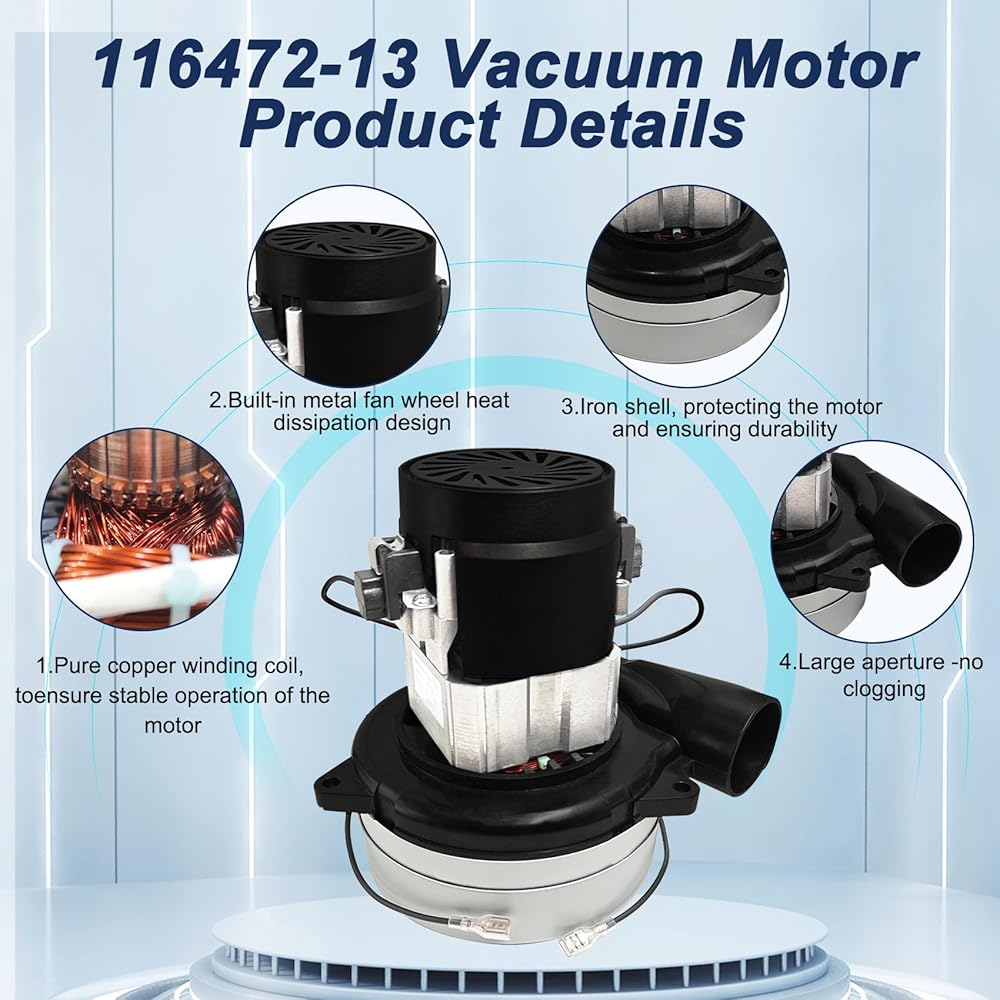 116472-13/116472-00 Vacuum Motor, Electric Vacuums Pump Blower Motor for ametek Lamb, 120V 2-Stage Central Vacuum Motor Blower Replacement for Vacuum Cleaner, Shop vac Motors for Industrial Cleaning