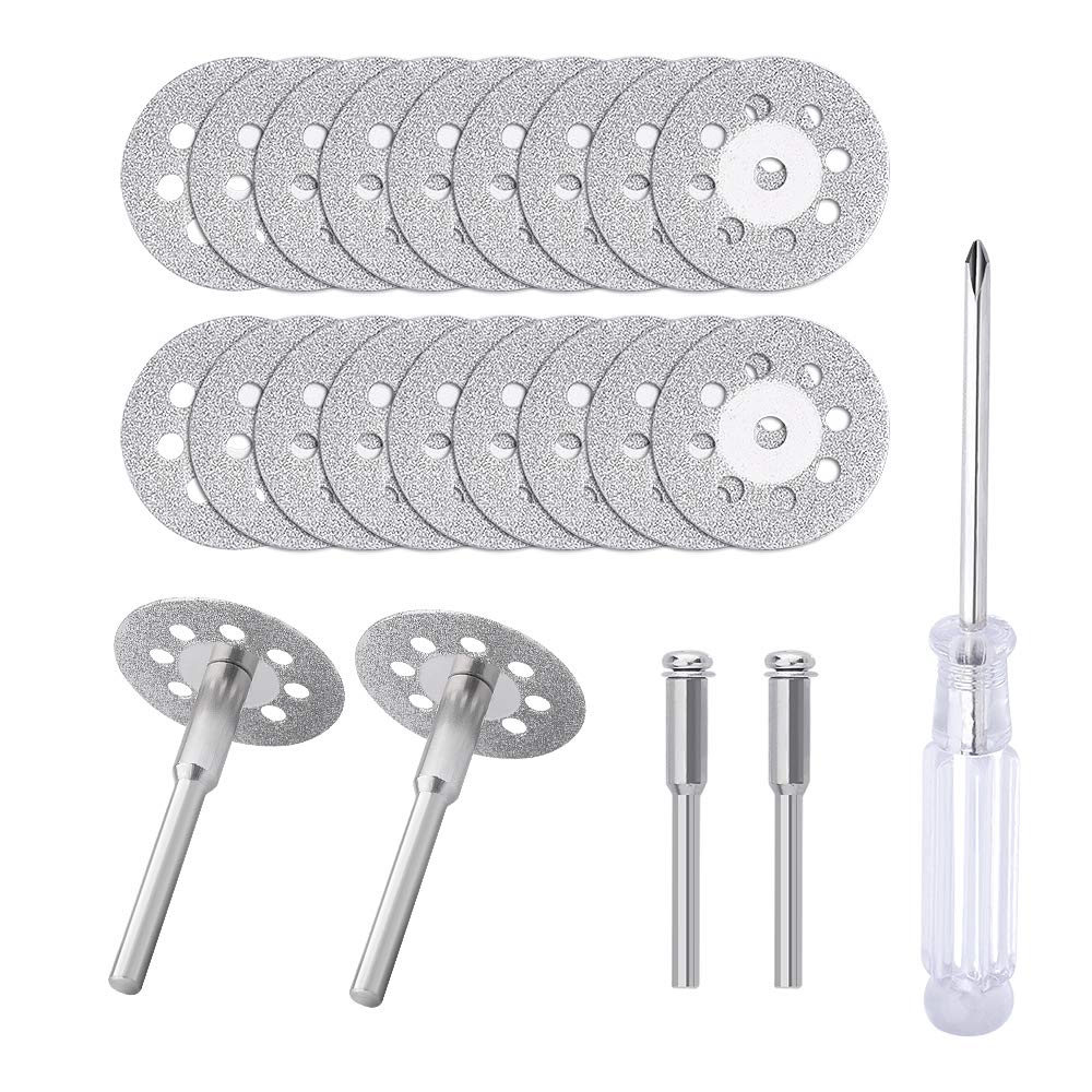 Package Include - This kit Includes 30Pcs cutting discs(22mm in diameter), 6Pcs mandrels and 1Pc Screwdriver, fit for most drills rotary tools