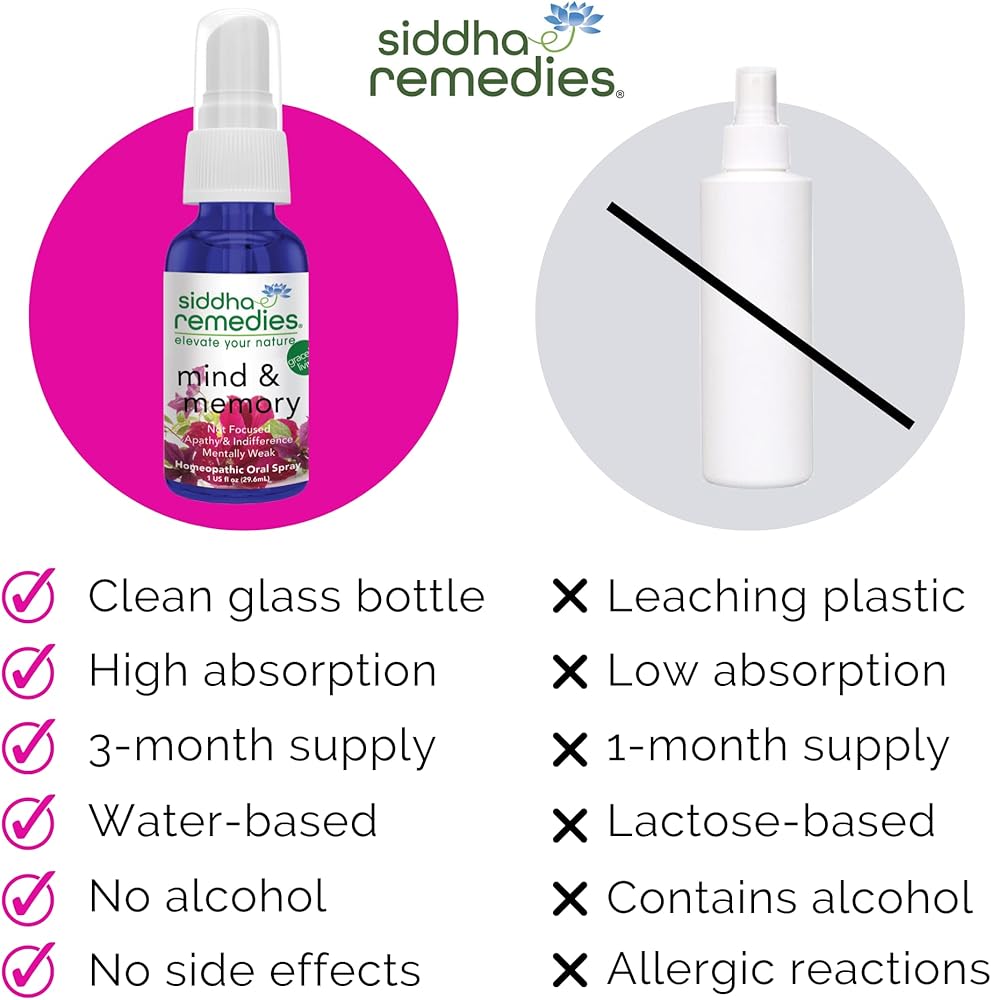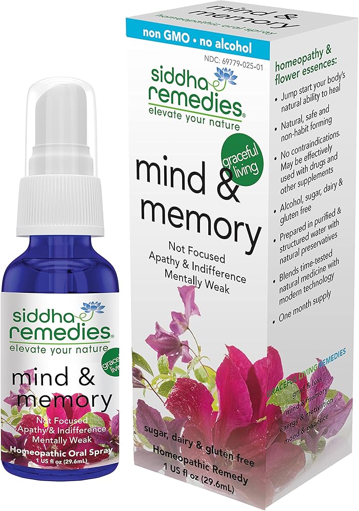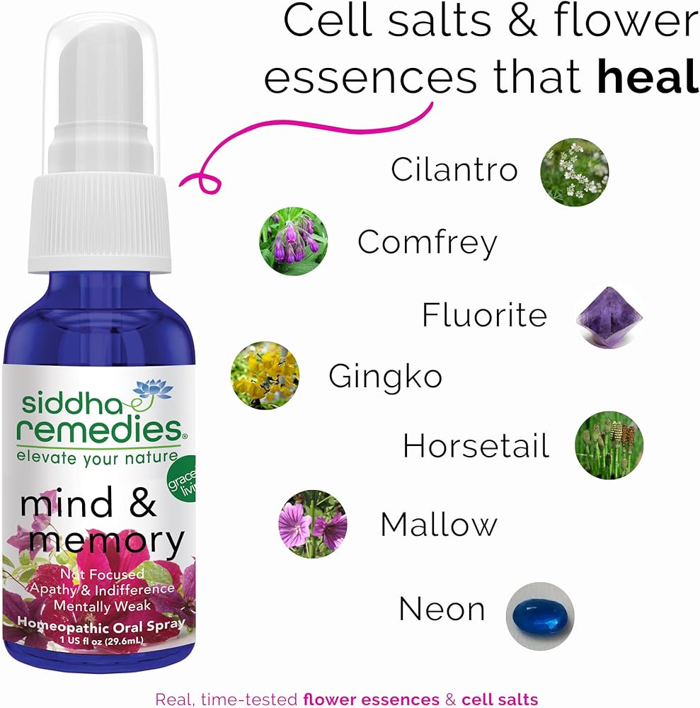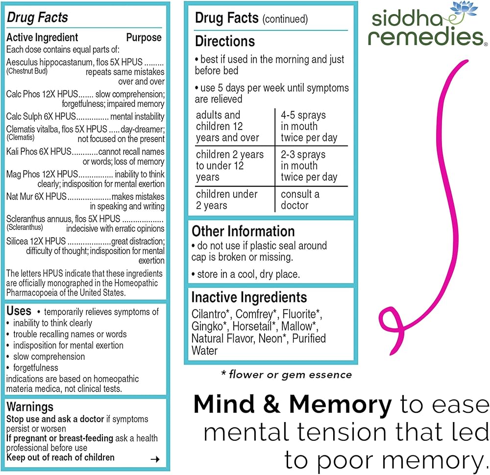 رذاذ للعقل والذاكرة، من سيداها ريميديز، لالتهاب الجلد، عدم الفرق، منخفض التركيز | علاج مثلي طبيعي 100% مع أملاح خلايا المعالجة المنزلية وخلاصة الزهور | خالٍ من الكحول والسكر