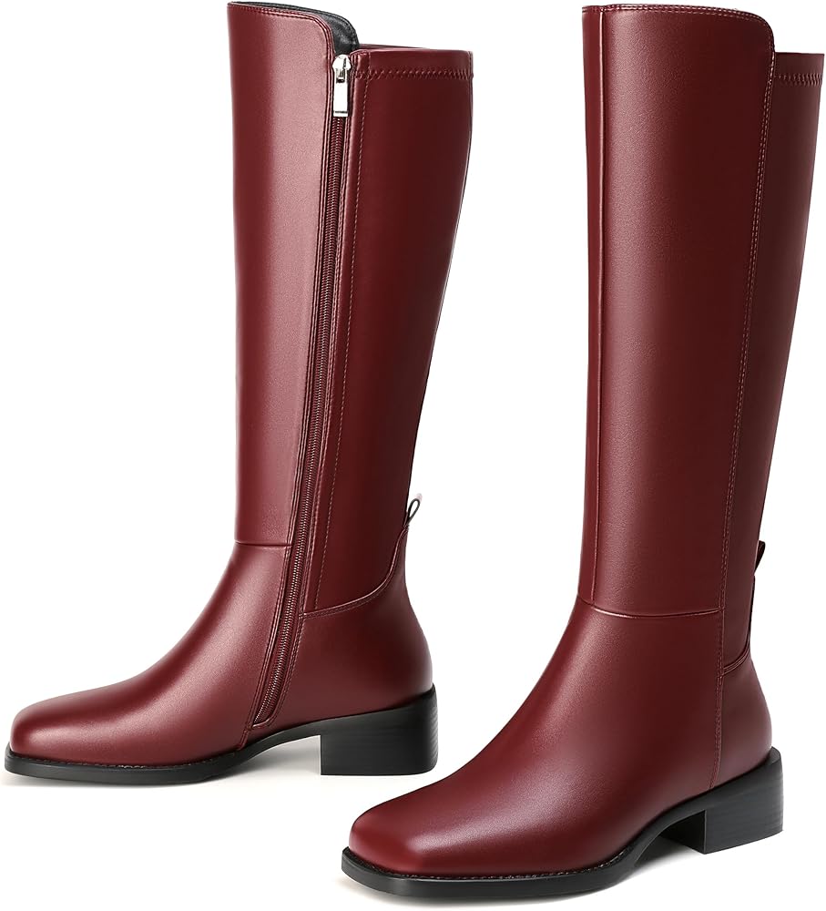 ⭐ أحذية نسائية عالية الركبة: السوستة الجانبية تسمح بسهولة وإيقاف تشغيلها. إن إصبع القدم البسيط والعمود الأنيق المرتفع يطيل شخصيتك ويضيف اللمسة الصحيح للأناقة.