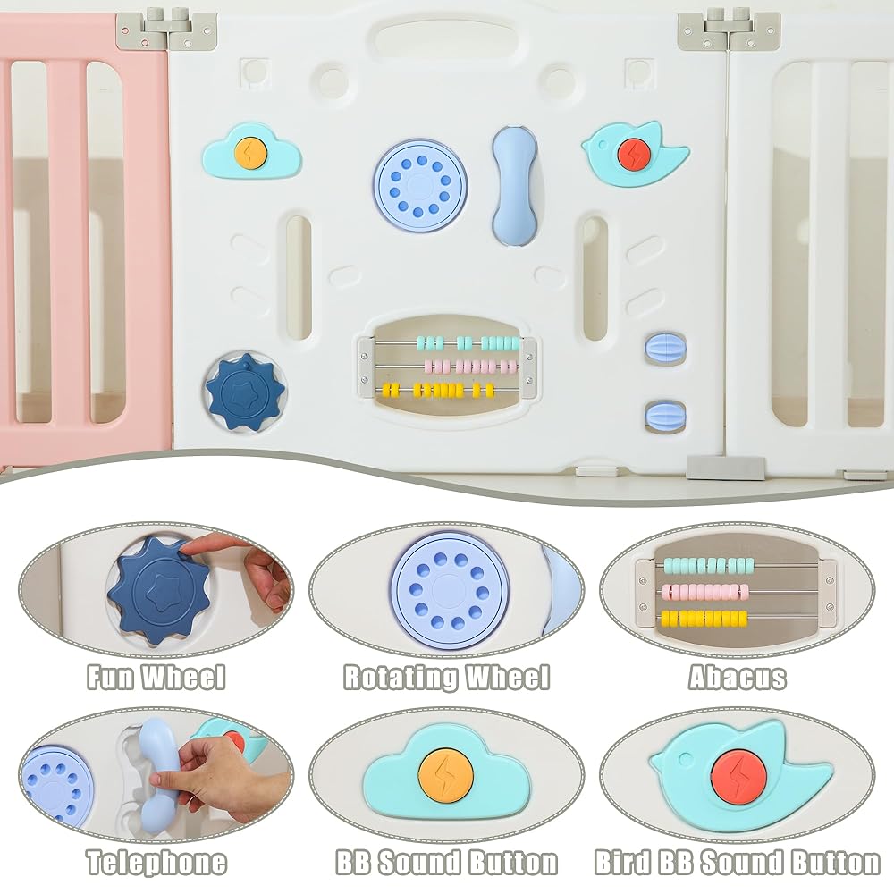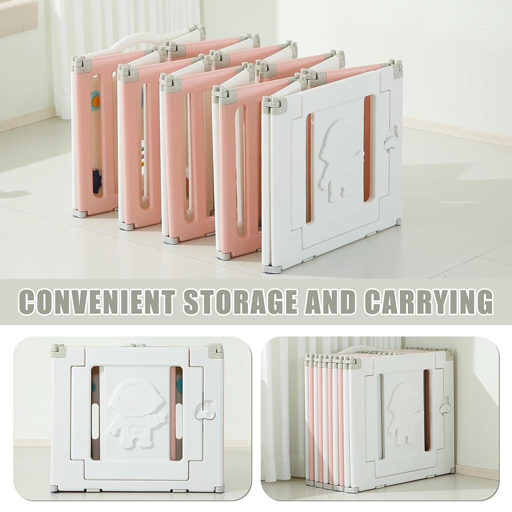 Bestgame Baby Play Pen, Foldable Play Pens for Babies and Toddlers, 22 Panels Extra Large Baby Playpen, Astronauts Portable Fence, Kids Gate Playpen Yard - Pink