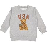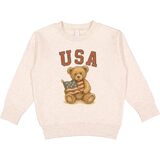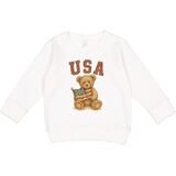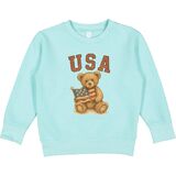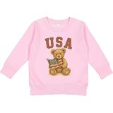 Adorable teddy bear holding an American flag with 'USA' above. Perfect for any proud patriot.