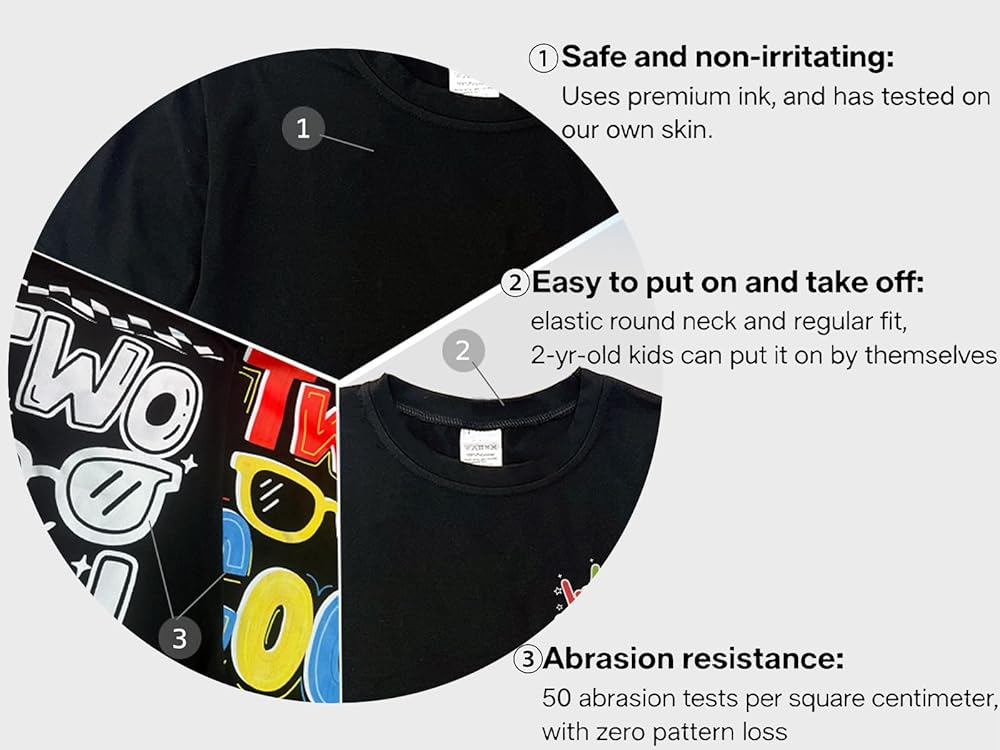 اجعل عيد ميلادك البالغ من العمر عامين مميزًا مع قمصان الأولاد التي تتميز بتصميمات لطيفة ومضحكة مع رسومات رائعة. تجعل الرقبة المرنة Round من السهل ارتداءها ، وهي مثالية لأي ملابس حفلة عيد ميلاد ، بالإضافة إلى ملابس صبيان يومية تبلغ من العمر عامين.