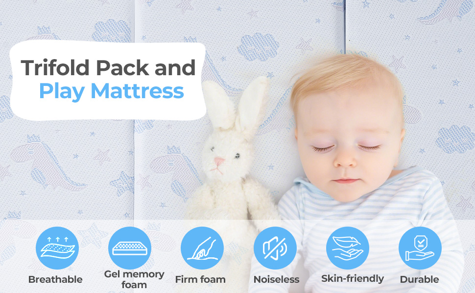 محمولة ومتعددة الاستخدامات: محمل حقيبة بما في ذلك. مرتبة سرير محمولة مع طي ثلاثي المطوية بسهولة للاستخدام الداخلي والخارجي. سواء كنت مسافرًا أو تزور أصدقاء ، ستتمكن من تزويد طفلك بمساحة مألوفة ومريحة للنوم