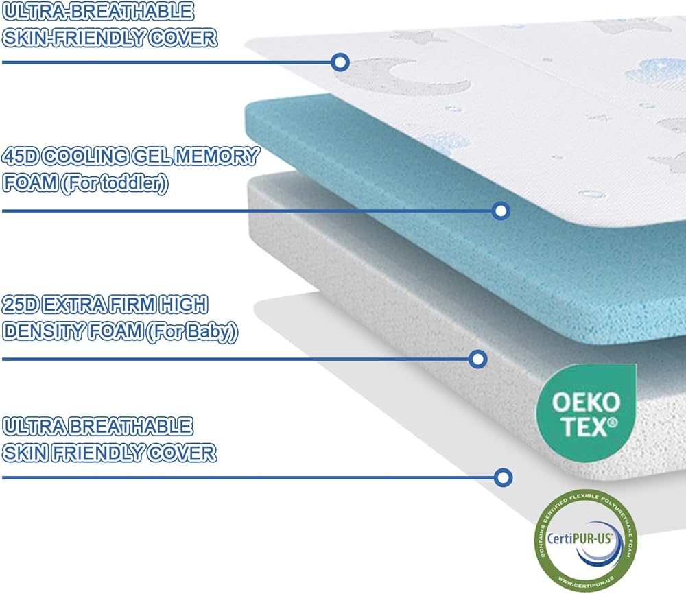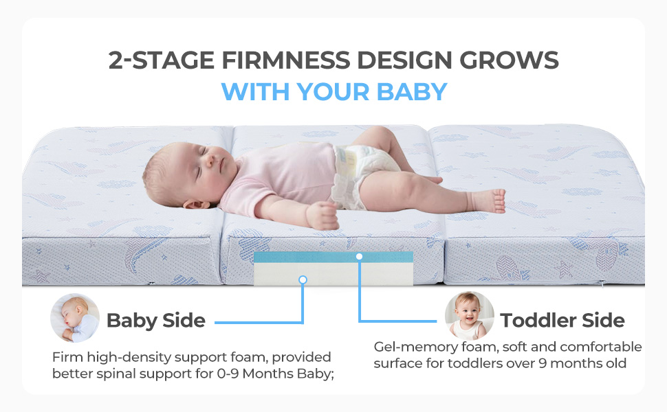 مرتبة السلامة والسرقة الممتازة: رغوة معتمدة من Certipur-US. تستخدم Trifold Pack N Play Mattress تصميمًا قويًا وذاتًا على الوجهين. يمكن للدعم ذو الكثافة عالية الكثافة أن يكون الجانب الأبيض للرضع (0-9 أشهر) يدعم أفضل حماية العمود الفقري للطفل ؛ يخلق الجانب الأزرق من رغوة ذاكرة هلام التبريد سطحًا ناعمًا ومريحًا للأطفال الصغار (9+ أشهر). يمكن لمراتب Trifold Pack N Play أن تحقق توازنًا مثاليًا من الراحة والدعم لحماية العمود الفقري وتلبية الاحتياجات التنموية
