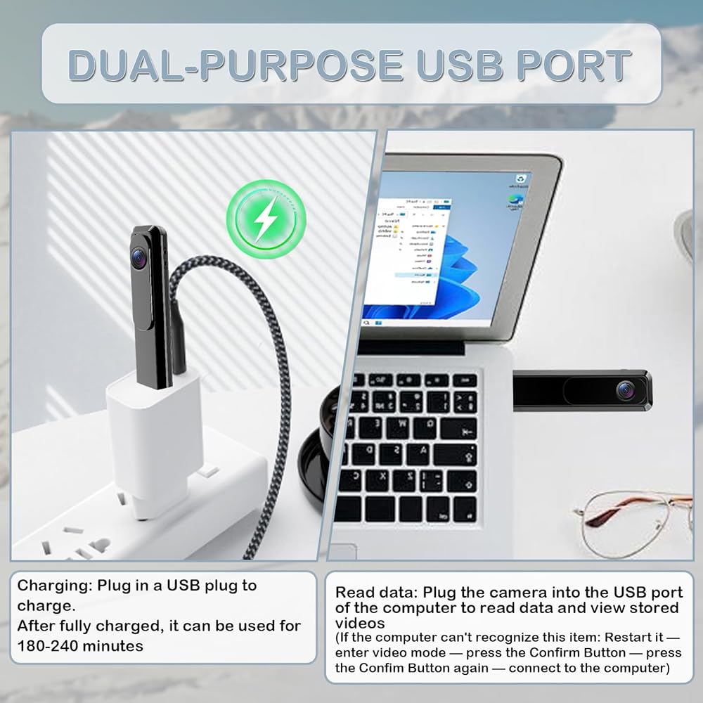 تسجيل الحلقة: تحتوي كاميرا الجيب على وظيفة تسجيل حلقة ، والتي يمكن أن تستمر ما يصل إلى 180-240 دقيقة من تسجيل الدورة بعد الشحن الكامل ، ويدعم أيضًا الشحن أثناء التسجيل ، ويمكنه العمل بعد 24 ساعة من توصيل مصدر الطاقة