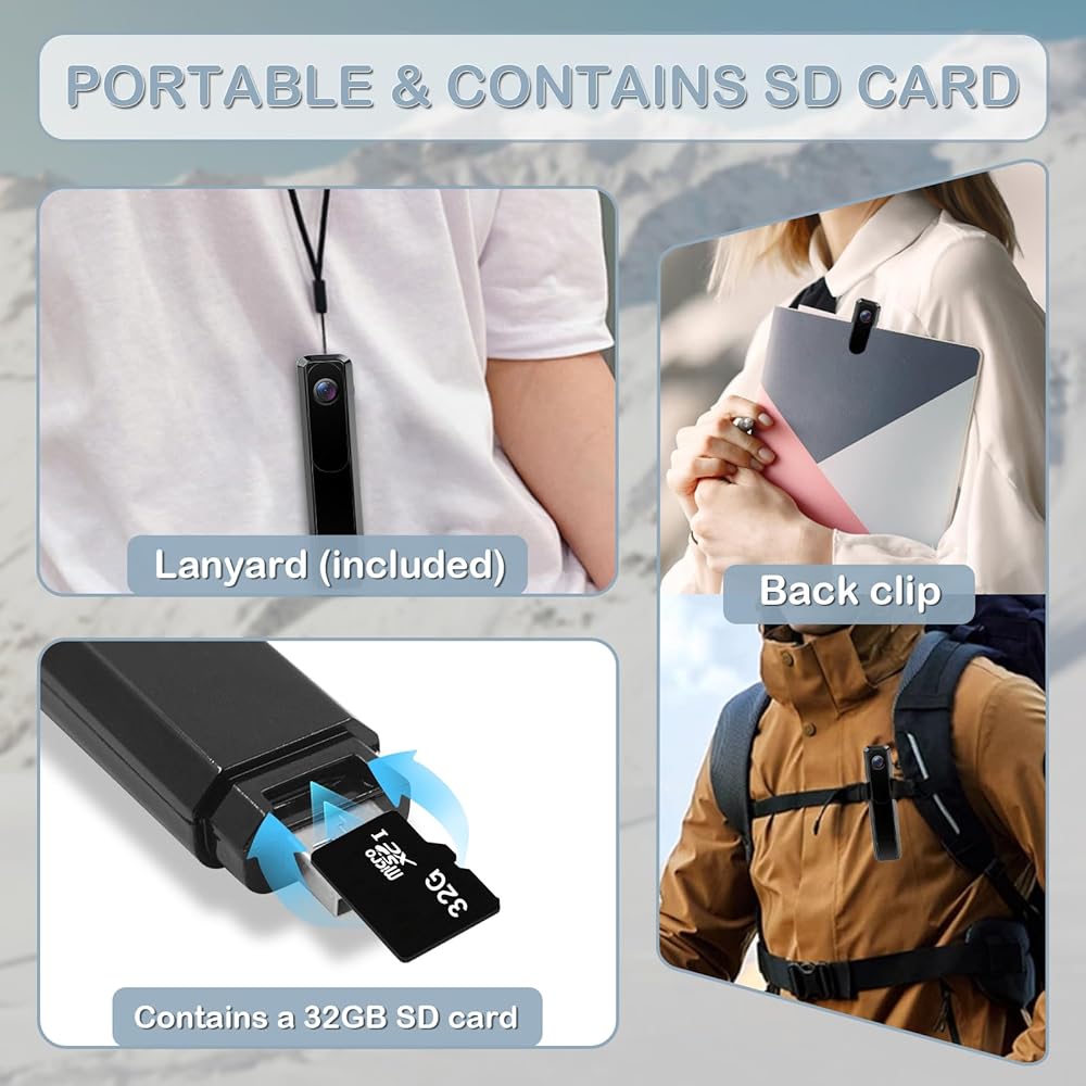 كاميرا الجسم مع تسجيل الصوت والفيديو ، HD 1080p كاميرا الجسم مع مقطع خلفي ، كاميرات صغيرة محمولة مع تسجيل حلقة ، Mini Police Bodycam مع بطاقة SD 32 جيجابايت للتسوية ، Plog ، الرياضة ، السفر