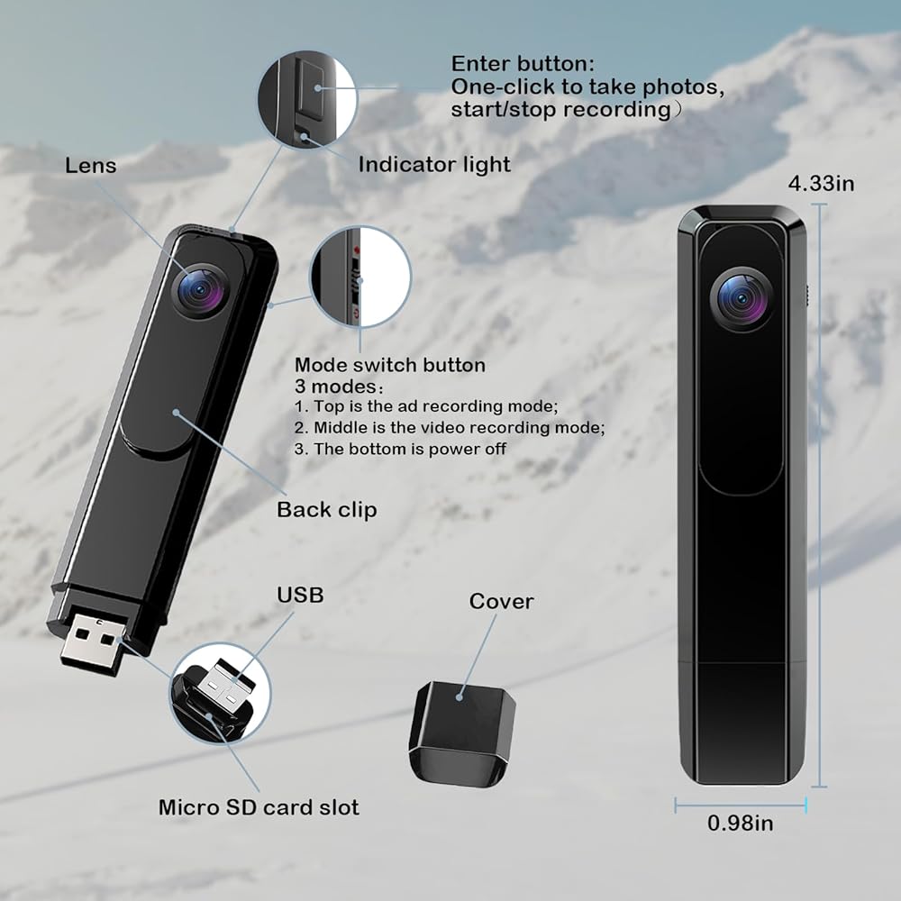 1080 بكسل HD: تحتوي كاميرا الجسم هذه على 1920 × 1080 بكسل عالية ، مع مراعاة قابلية النقل وجودة الصورة والتطبيق العملي ، لتلبية مدونة الفيديو اليومية ، احتياجات تسجيل السفر ، جودة صورة واضحة