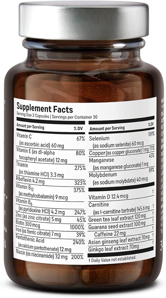 معزز الطاقة - قمنا بدمج الفيتامينات اليومية المتعددة مع المستخلصات النباتية القيمة مثل الجنكة بيلوبا والشاي الأخضر والغرنا والجينسنغ ومستخلص أوراق الجنكة لإنشاء معزز طاقة طبيعي مثالي.