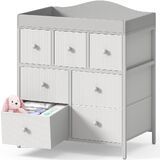 المساحة العلوية المتغيرة الكبيرة: البعد الإجمالي هو 32.7 "W x 19.7" D x 37.2 "H ، 19.7 '" مساحة كبيرة بما يكفي لتغيير الحفاضات ، البعد الدرج الكبير هو 12'W*16.9'd*9'H ، ارتفاع مثالي للبالغين