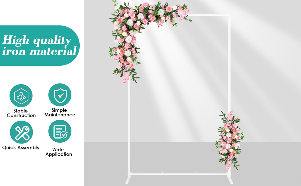 الحجم السخي والبناء القوي: القياس في الطول والعرض ، تم تصميم إطار القوس متعدد الاستخدامات من أنابيب مربعة متينة يمكن أن تدعم العديد من العناصر الزخرفية مثل البالون أو ترتيبات الأزهار. مع أرجله القوية القوية ، يضمن هذا القوس الدعم الآمن والمتوازن للاحتفالات الداخلية والخارجية ، مدعومة بطبقة راتنج الايبوكسي المقاومة للطقس