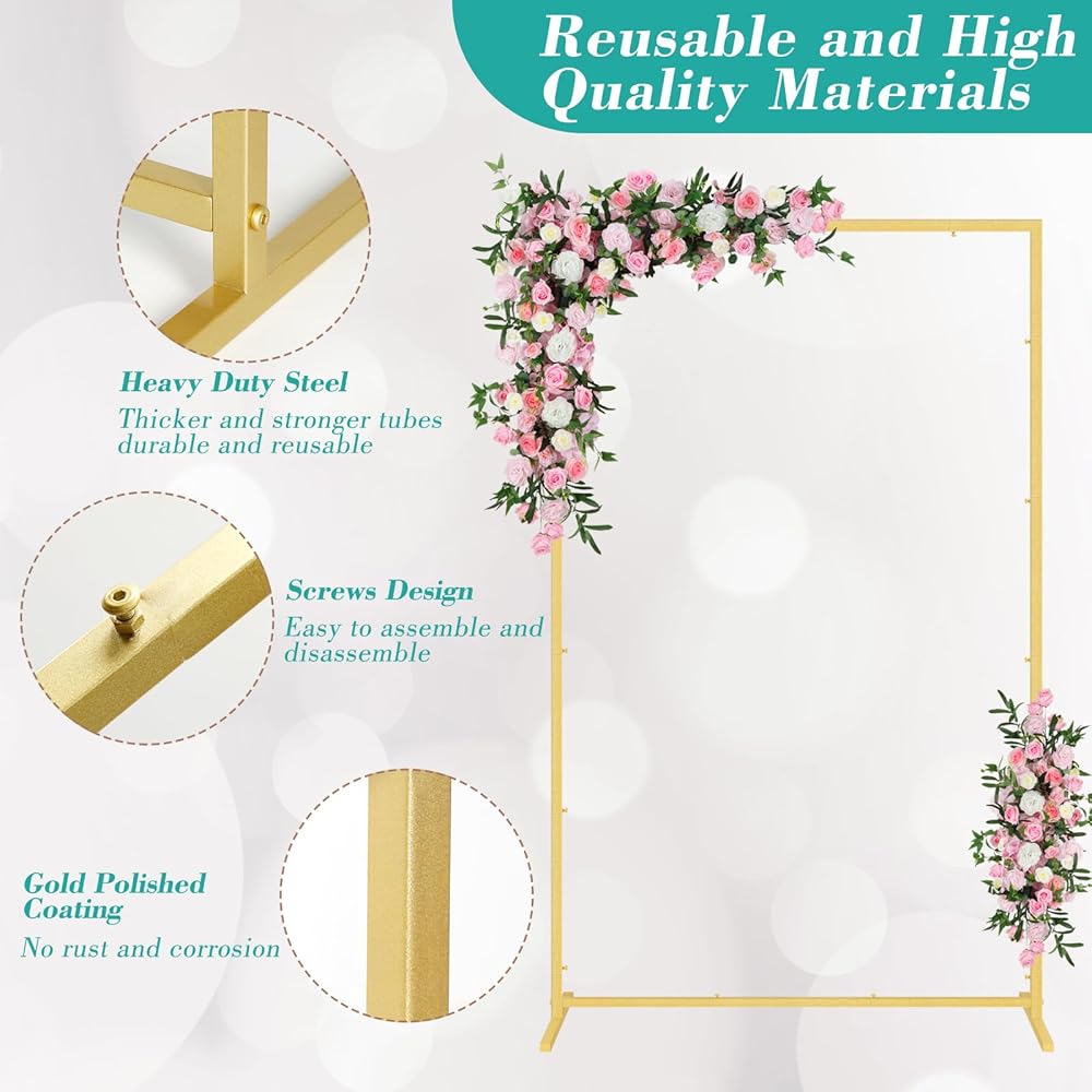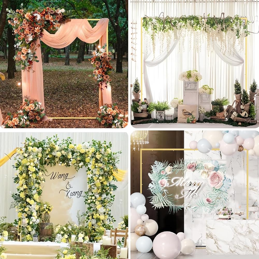 قوس الزفاف الأنيق للاحتفالات التي لا تنسى: قم بتحويل حفل زفافك مع موقفنا الخلفي المذهل للمعادن. يوفر تصميمه المربع الخالد والانتهاء من الذهب المعدني الفاخر أساسًا متين