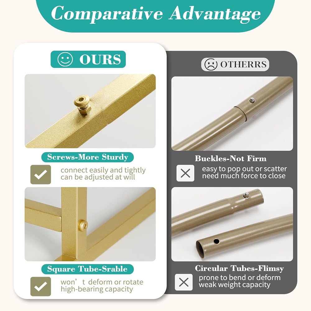 يعزز الشريط الأفقي الاستقرار: تأتي شريحة الخلفية المعدنية الذهبية هذه مع شريط أفقي يمكنه بسهولة استيعاب ديكورات مختلفة وتوفر ثباتًا إضافيًا. بمجرد تشديده مع الجوز الفراشة ، يكون بالفعل قويًا جدًا. إذا كان لديك البراعة اليدوية القوية ، فيمكن تجميعها بسهولة أو تفكيكها في 5 دقائق ، مما يجعلها مناسبة للغاية لمختلف المناسبات.