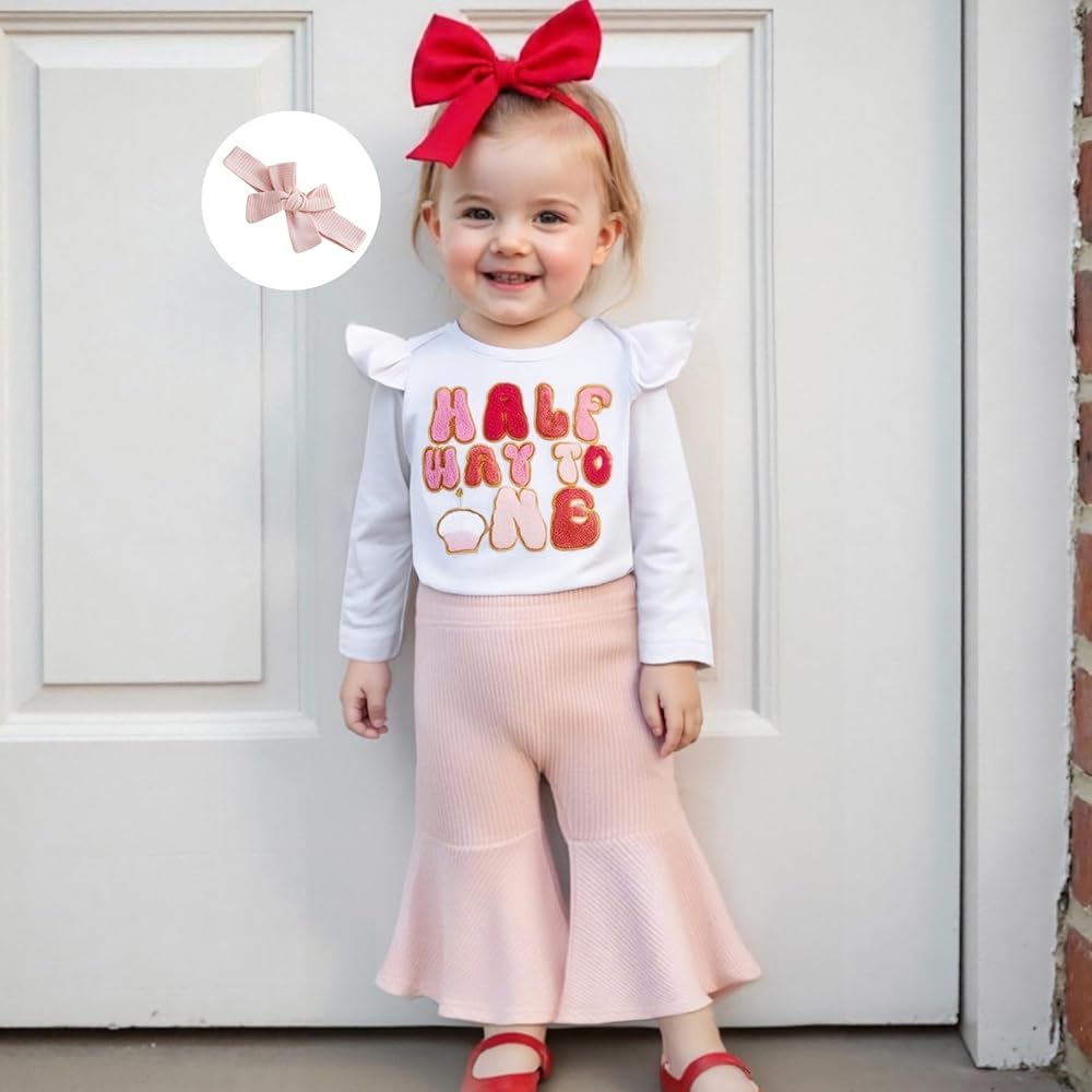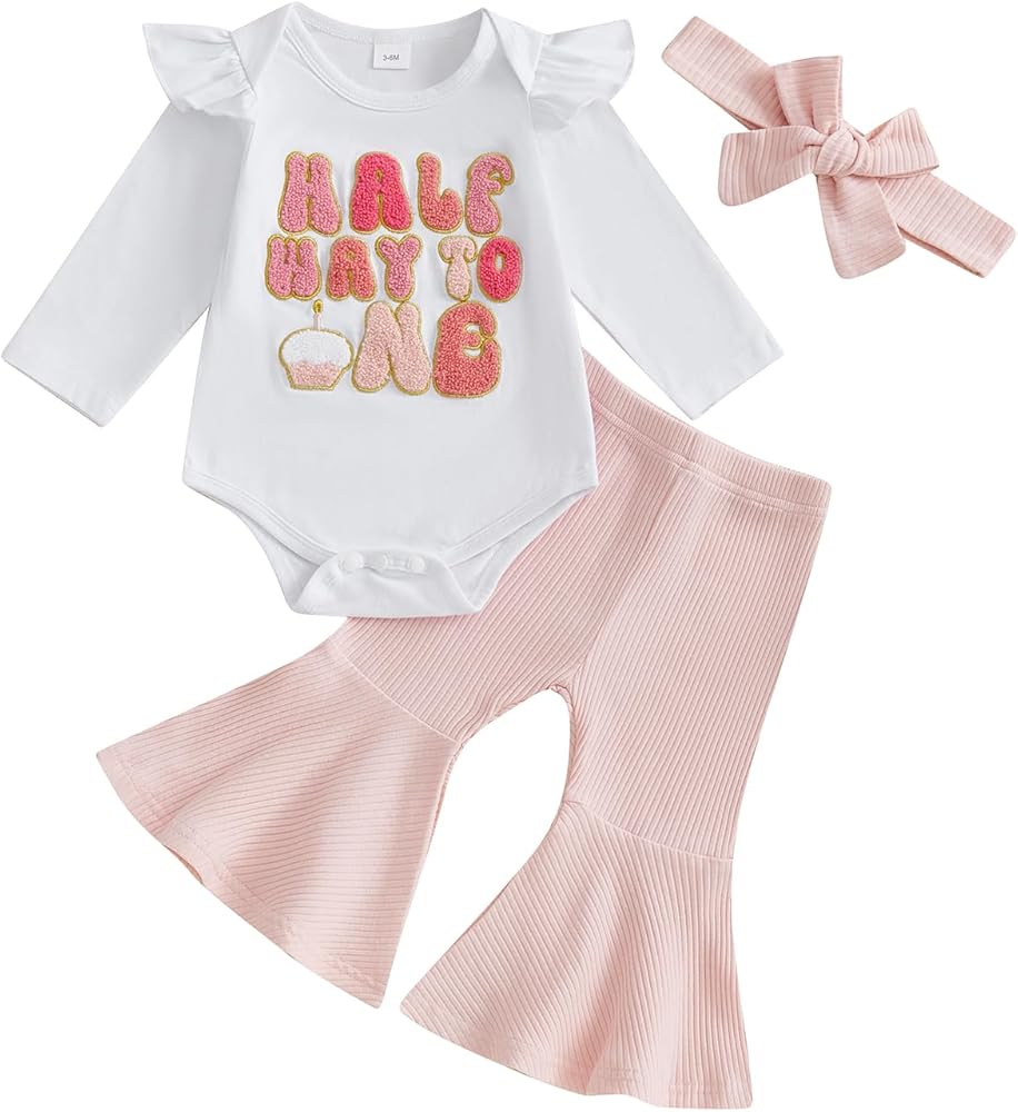 الميزة: Romper لديه كم طويل ، رقبة الطاقم ، نمط رسائل التطريز ، زوج مع سروال المهدئة ومجموعة عقال ، 6 أشهر ملابس عيد ميلاد ، فتاة عيد ميلاد 6 أشهر ، 6 أشهر فتاة طفلة 1/2 عيد ميلاد