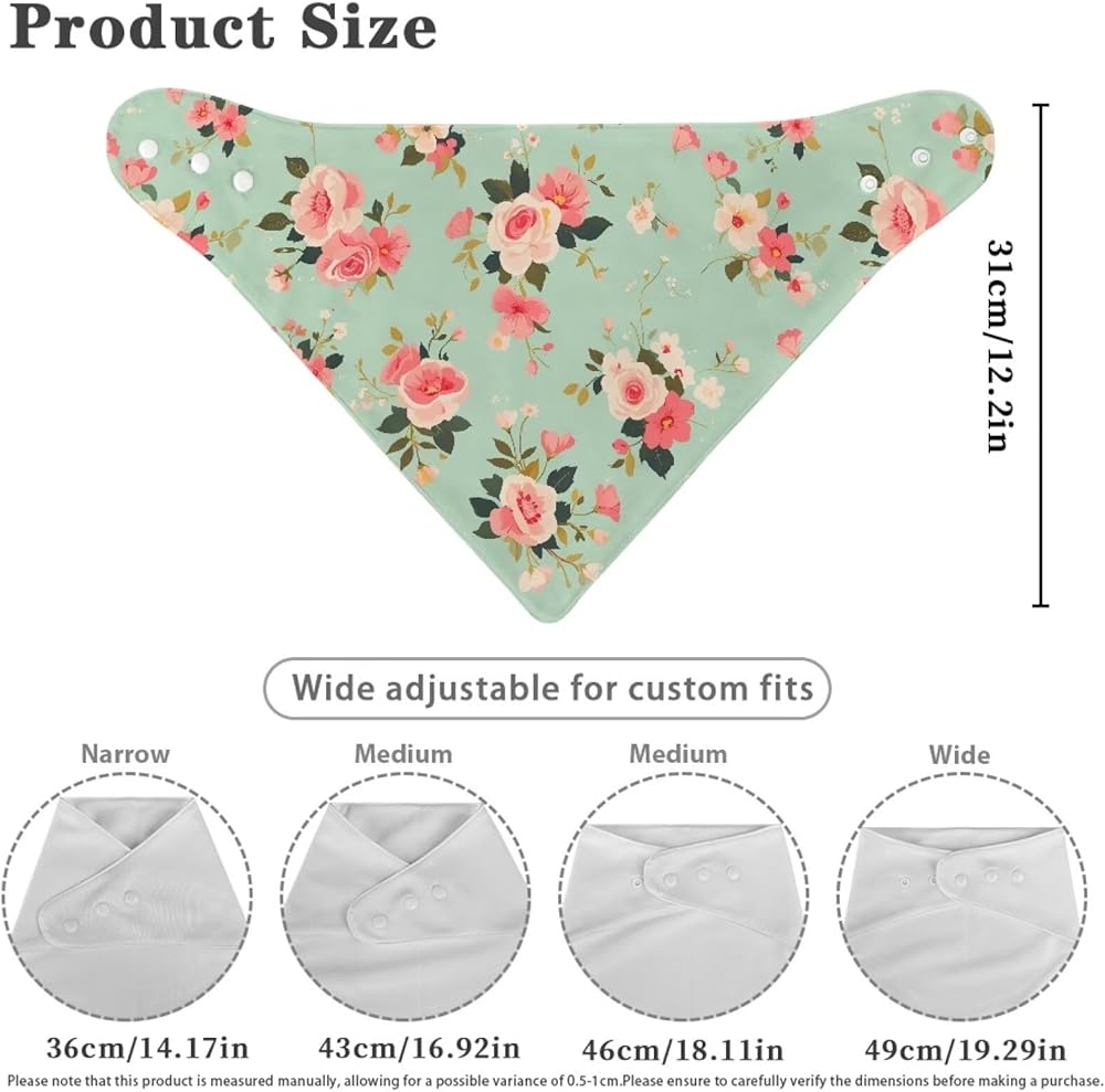 -Adjustable Design: The neck of the saliva towel has an adjustable snap design, which can be adjusted as needed. The tightest is 14.17 inches and the widest is 19.29 inches. Different sizes will not make you feel too loose or too tight.