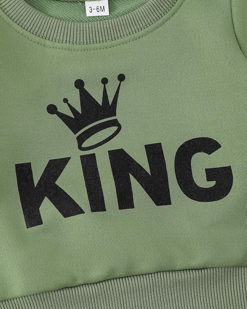 مجموعة ملابس الأطفال الأنيقة والمرحة: طباعة King Catchlating يمنح أطفالك القليل