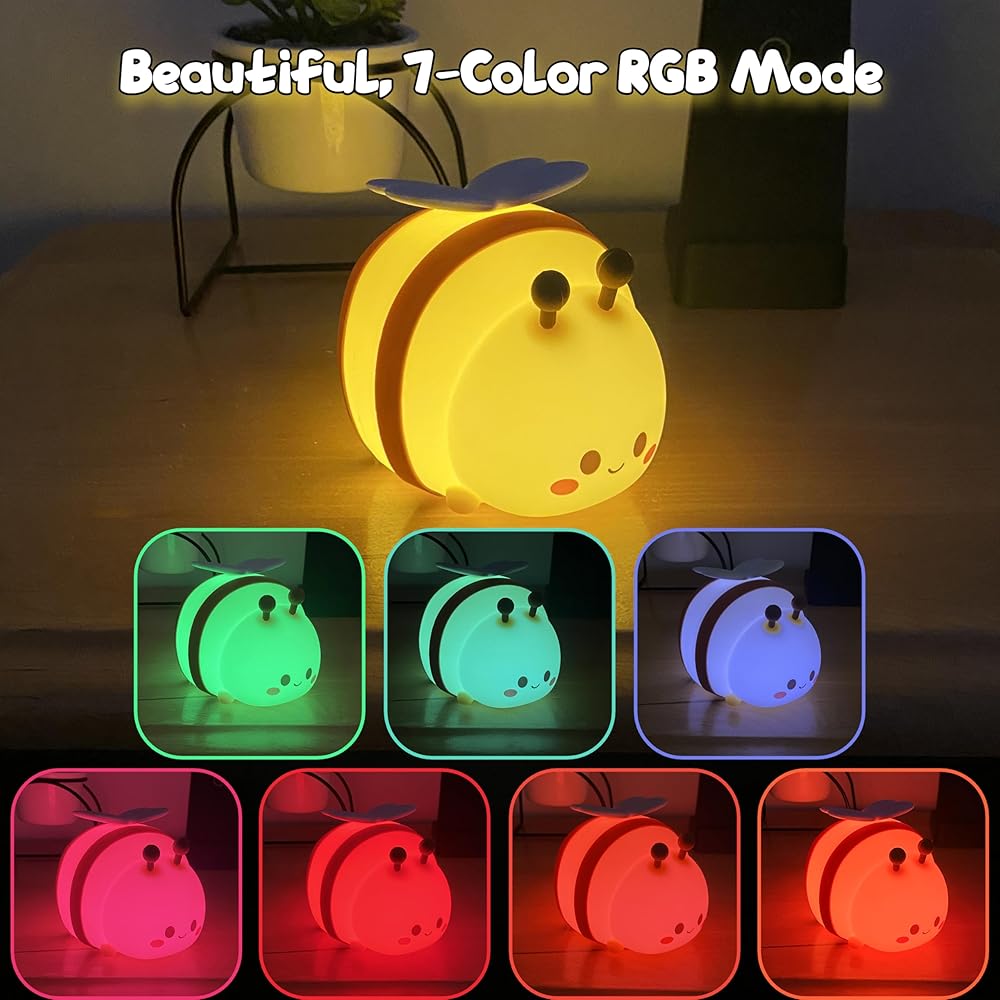 ضوء ليلي لطيف النحل-مصباح RGB قابل للرقابة السيليكون القابل للرقابة اللمسات مع سطوع قابلة للتعديل وأنماط ملونة متعددة-مثالية لحضانة الأطفال وغرفة النوم وديكور وقت النوم