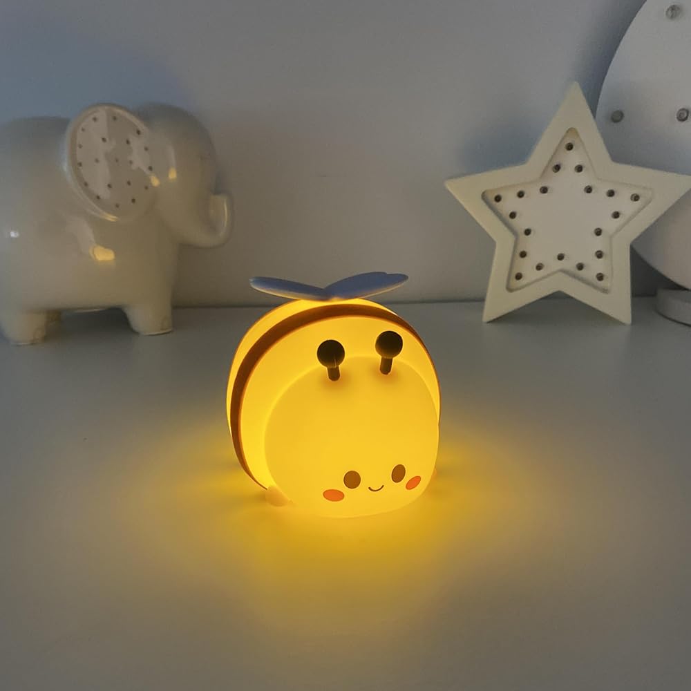Add a touch of fun and warmth to your child's room with the HomeCozi Cute Bee Night Light. Crafted from soft, durable silicone, this adorable light brings both style and comfort to any nursery or bedroom. The touch-controlled feature makes it easy for little hands to operate – simply tap the top of the bee to switch between settings. This night light offers two distinct modes to suit every need: RGB mode for a variety of colorful light options, and adjustable brightness white light for a warm, soft glow perfect for bedtime. The white light may appear slightly yellow due to the silicone color, creating a cozy, inviting atmosphere for sleep or relaxation. With its rechargeable design, this light is a convenient and eco-friendly solution for your child's room. Forget about constantly replacing batteries – simply charge via the included USB-C cable, and you're ready to go. Perfect for nurseries, children's bedrooms, or as a thoughtful gift, the HomeCozi Cute Bee Night Light adds a charming touch to any space. Whether you're looking for a soothing glow for bedtime or a playful light for playtime, this light is sure to be a favorite in your child's room. Ideal for birthdays, baby showers, or any special occasion, this cute and functional night light makes a wonderful gift for kids and parents alike.