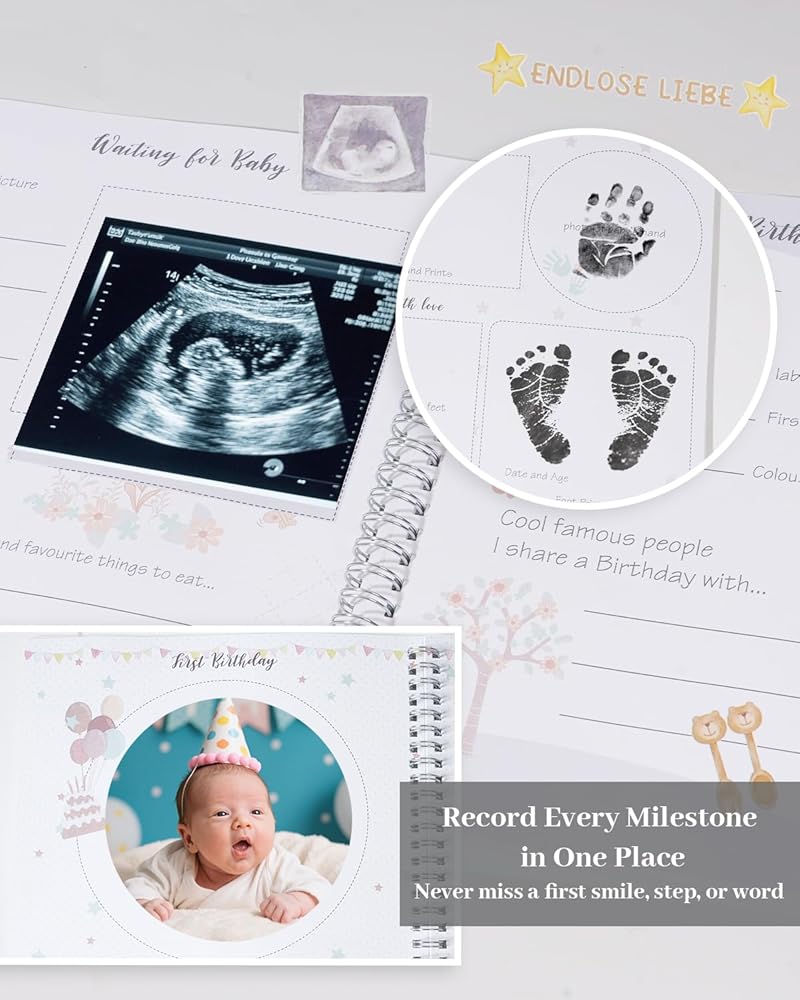 كتاب ذاكرة الطفل لصبي أو فتاة Baby Book Thekake Baby Year Year Book Track Your Baby Journal Photo Photo Record Milesons Baby's Milestones and Photos for Baby Shower Newborn Baby Baby.