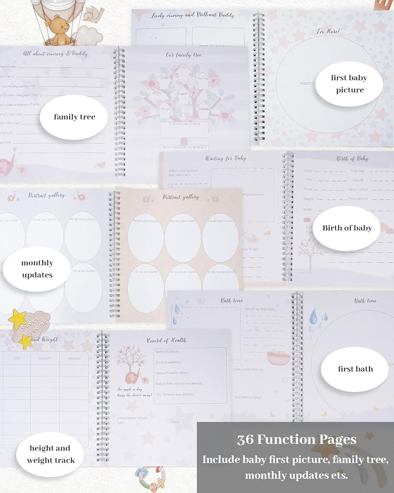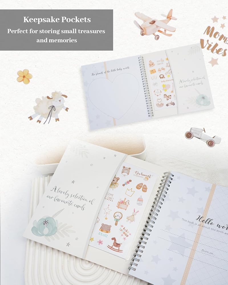 تخزين إضافي مع جيوب الأمامية والخلفية - على عكس كتب صور الأطفال العادية ، يتميزنا بجيوب واسعة لعقد تذكارات إضافية مثل صور الموجات فوق الصوتية أو بطاقات أعياد الميلاد أو التذكارات. هدية مثالية لبضي الطفل لتنظيم كل تلك الذكريات التي لا تقدر بثمن في ألبوم طفل جميل وكتاب الذاكرة.