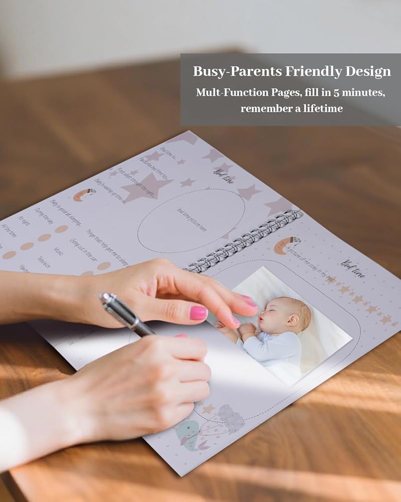 يتيح لك كتاب ذاكرة الأطفال السريع والسهل للآباء المشغولين - المصمم للآباء والأمهات الجدد ، الحفاظ على لحظات خاصة في 5 دقائق فقط - إضافة صور وتدوين أفكارك. هدية لا بد من وجودها للأمهات والآباء الذين يرغبون في الحصول على طريقة خالية من المتاعب للتعرف على السنة الأولى للطفل.