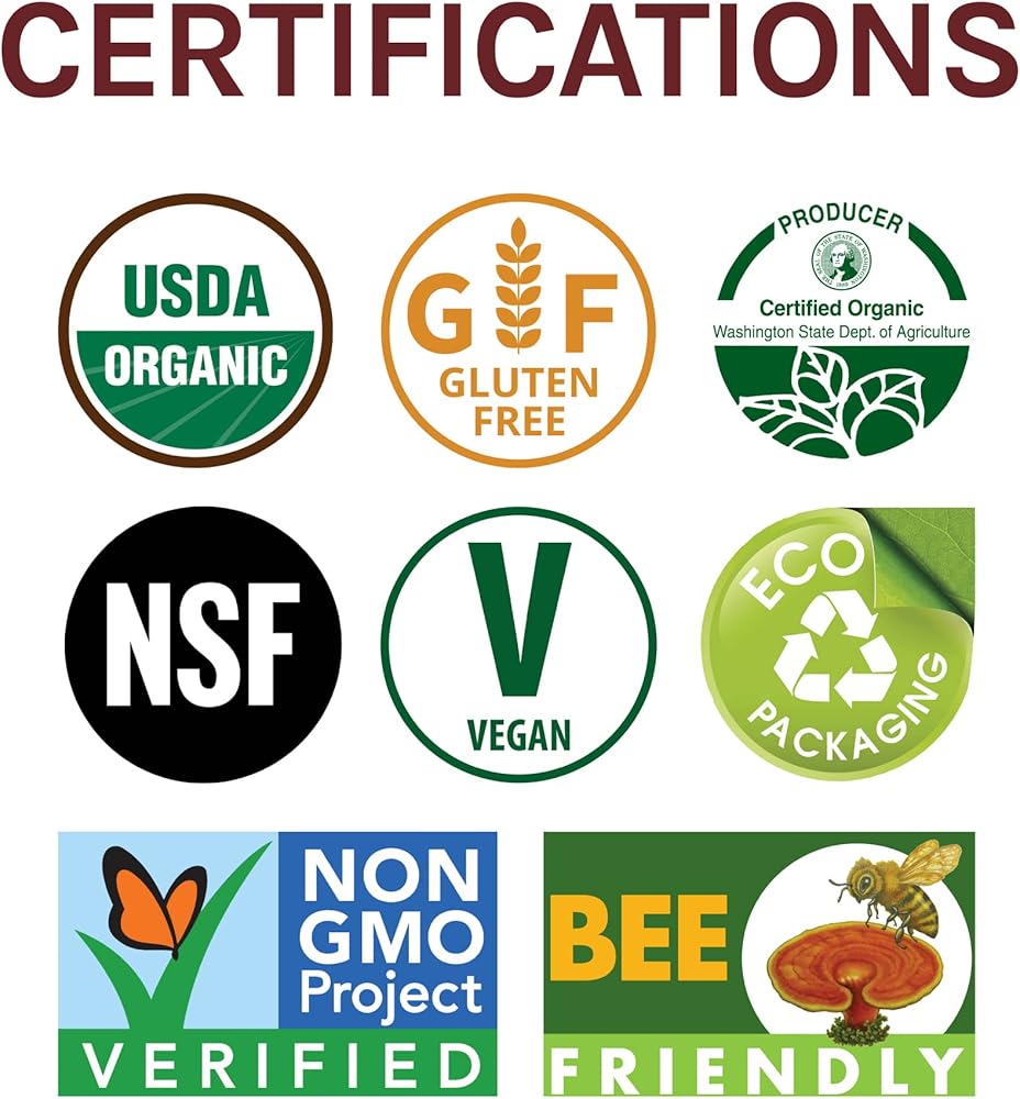 مكونات آمنة وذكية: فطر عضوي معتمد ومزروع بشكل مستدام ومزروع في الولايات المتحدة الأمريكية من الغابة، إلى مزرعتنا، إليك