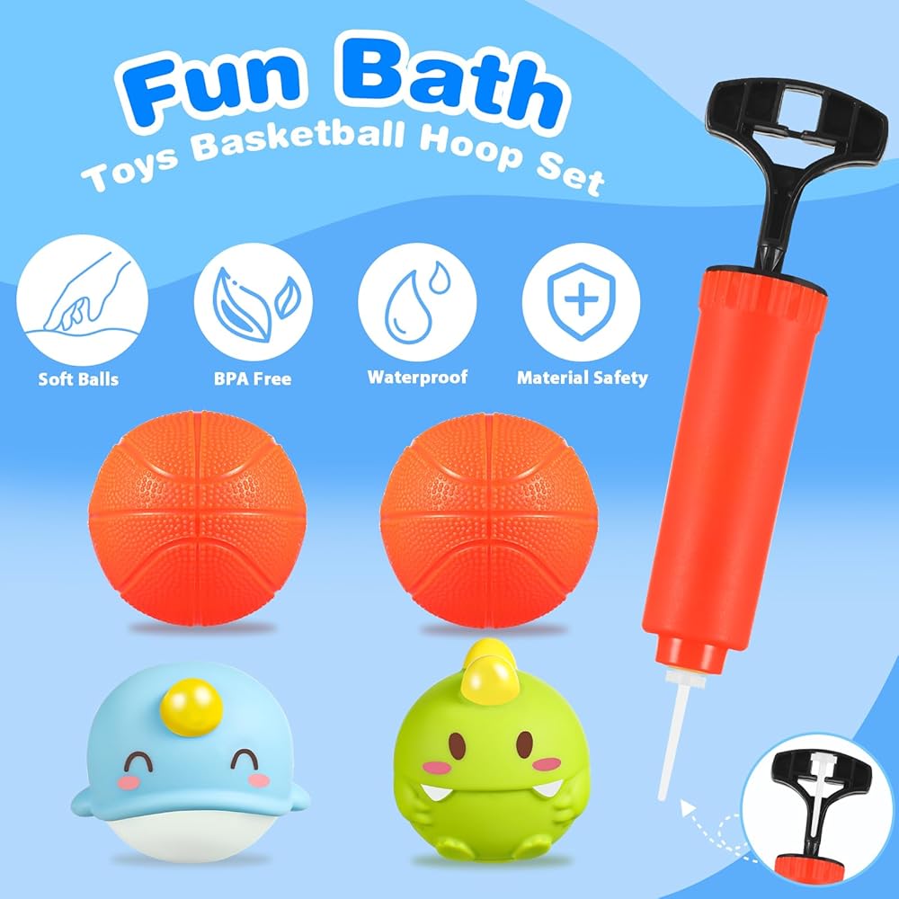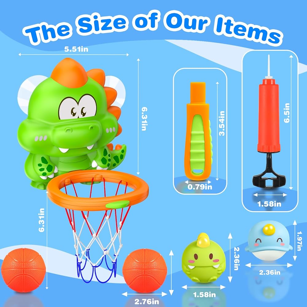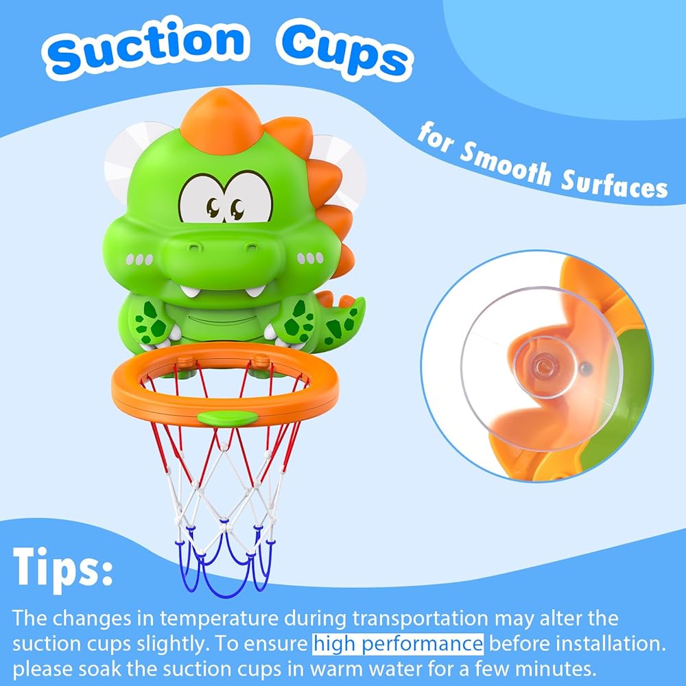 Topsolid Bathtub Basketball Hoop للأطفال-ألعاب Dino Style 2-in-1 مع أكواب شفط قوية و 4 كرات ثقب | لعبة إطلاق النار الممتعة للأطفال الصغار والفتيات الذين تتراوح أعمارهم بين 1-8