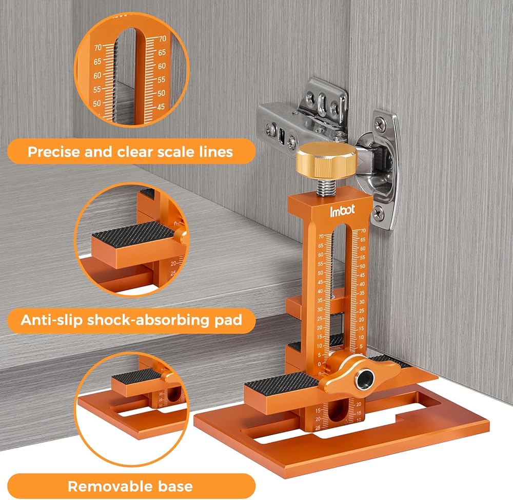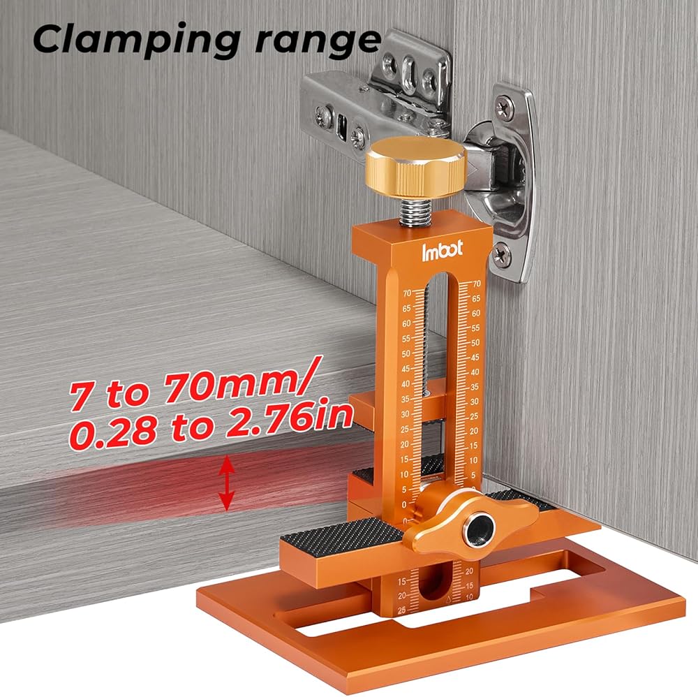 التثبيت السريع: مع رقصة باب الخزانة IMBOT ، يسمح المقبض السريع المعزول وذراع القفل لتحديد المواقع البسيطة والتثبيت الآمن أثناء عمليات الحفر والحفر. تساعدك على محاذاة أبواب الخزانة بسهولة ، فهي تتميز أيضًا بوسادات مطاطية غير قابلة للانزلاق لمنع الانزلاق وحماية الشغل.