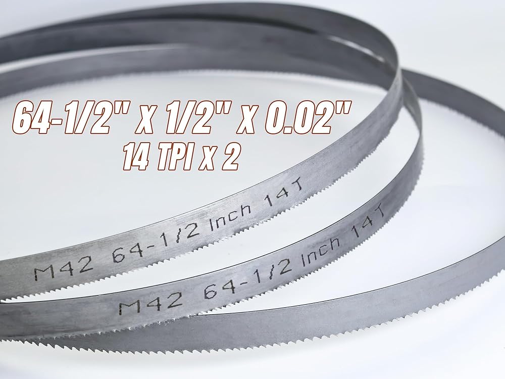 Bandsaw Blades for Horizontal Metal Cutting, Bi-Metal M42, 64-1/2 x 1/2 x 0.02 Inch", 24 TPI, 2 Pack Compatible With: Fits most 4X6 horizontal metal cutting band saws, for Grizzly G0622, G9742, for WEN 3970, for Harbor Freight, for JET Model: HBS-56S (414301) 414458 HVBS-56M 414457 Horizontal/Vertical Band Saw, for Shop Fox W1715 , for SKIL, for RIKON, for Sears Craftsman, for Central Machinery Model: 93762, compatible with BILT HARD 4"x 6"Metal-Cutting Band bandsaws, table bandsaws Comes with a teeth plastic guard, providing better protection for the saw teeth and ensuring convenient storage for spare bandsaw blades