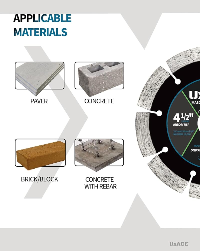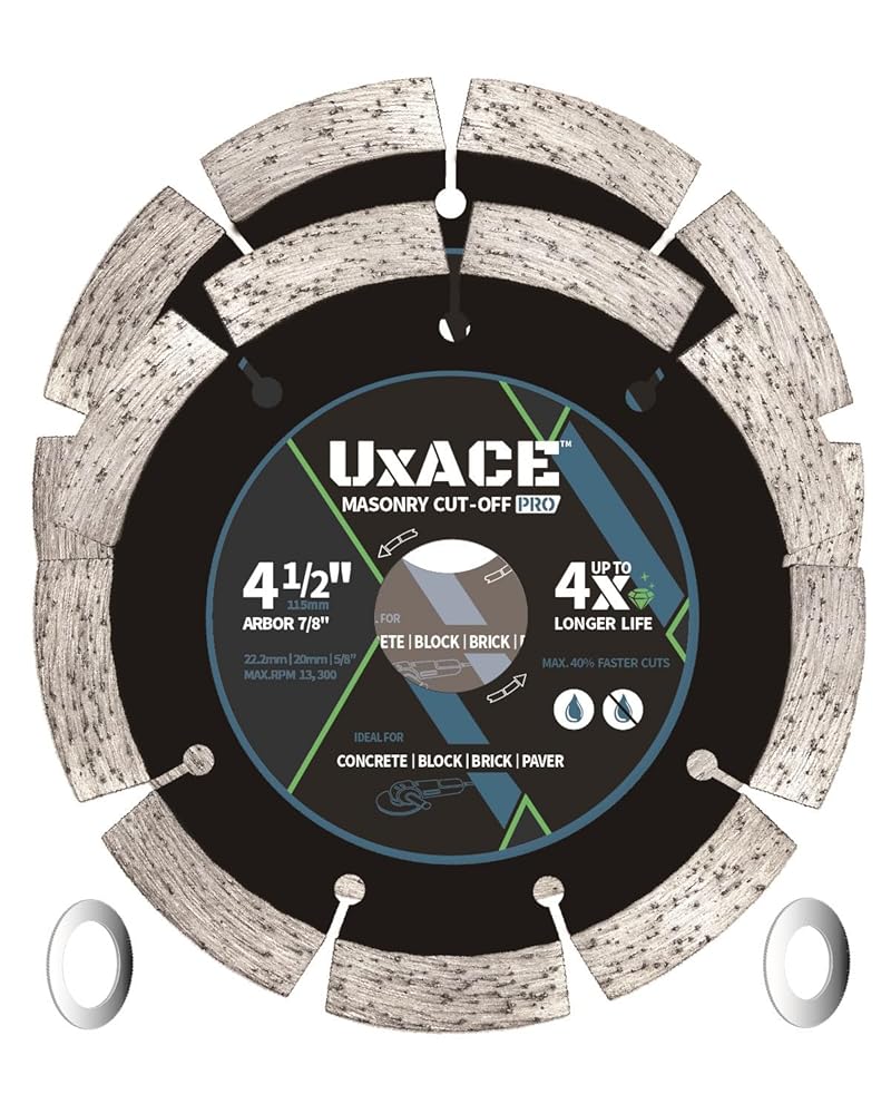 【مجموعة واسعة من التطبيقات】 Uxace Professional Diamond Blade هي قرص قطع بلاط متخصص لتقديم أداء غير عادي وأقصى عمر. مع تصميم رفيع للغاية ، ومواد حبيبة مميزة من الماس ، والطلاء الأسود غير اللامع ، فهذه هي شفرة الماس مناسبة لأي شخص يبحث عن قطع ناعم ودقيق على البلاط أو البورسلين أو الطوب والرخام والجرانيت أو السيرامي