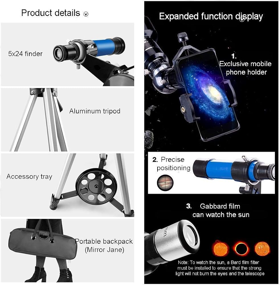 3. The telescope is suitable for beginners or children. It is easy to install and observe for beginners. It will encourage children to like learning space, get close to nature and stay away from electronic products. And provide a wonderful holiday or birthday gift idea for children who like science and astronomy.