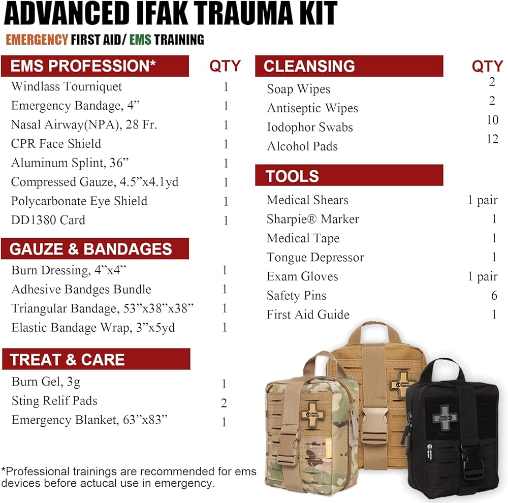 [مجموعة الاستجابة الأولى IFAK TRAUMA] - TOUROAM IFAK مصممة جيدًا لحالات الطوارئ أثناء المغامرة الخارجية، والصيد، والتخييم، والسفر، والكوارث، والحوادث، وهي جاهزة للمستجيبين الأوائل، إلخ