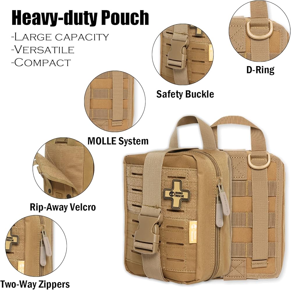 [متوافق مع MOLLE ومقاس كبير مطور] - الحجم المطور (8 بوصة ارتفاع × 7.5 بوصة عرض × 3.8 بوصة عمق) يمكن أن يمنحك مساحة أكثر من كافية لجميع مستلزمات ifak، وينطبق على كل من المغامر الفردي والفريق. تسمح أحزمة MOLLE المتينة المزودة بأزرار كبس بربط حقيبة EMT بأي معدات متوافقة مع MOLLE.