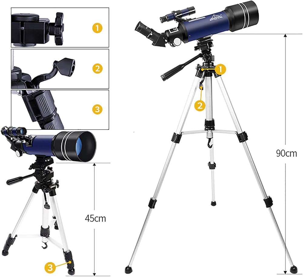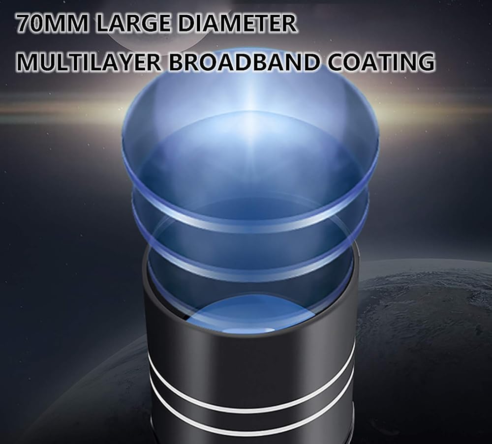 ▲Excellent children's educational astronomical telescope: It is very suitable for beginners or astronomy enthusiasts to explore the sky, stars, moon and scenery, allowing your children to keep in touch with natural science. 70mm large diameter, multi-layer broadband coating, ultra-wide field of view, sufficient light, clear and bright imaging.