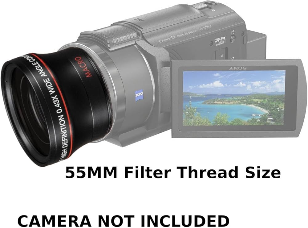 55MM 0.4X High Grade Wide Angle Conversion Lens for Sony FDR-AX33, Sony FDR-AX43 & Sony FDR-AX53 DAY NIGHT HIGH RESOLUTION VIDEO RECORDING