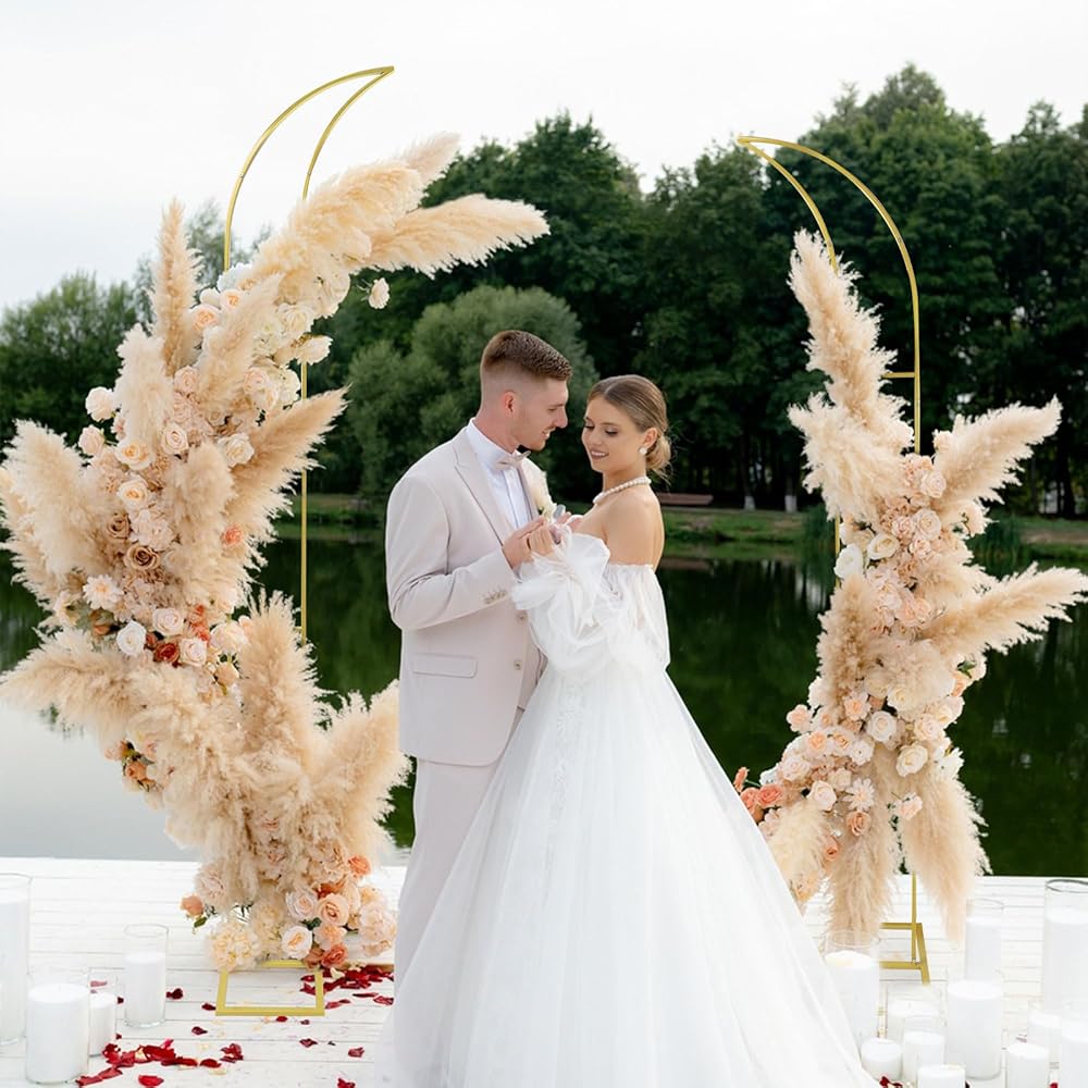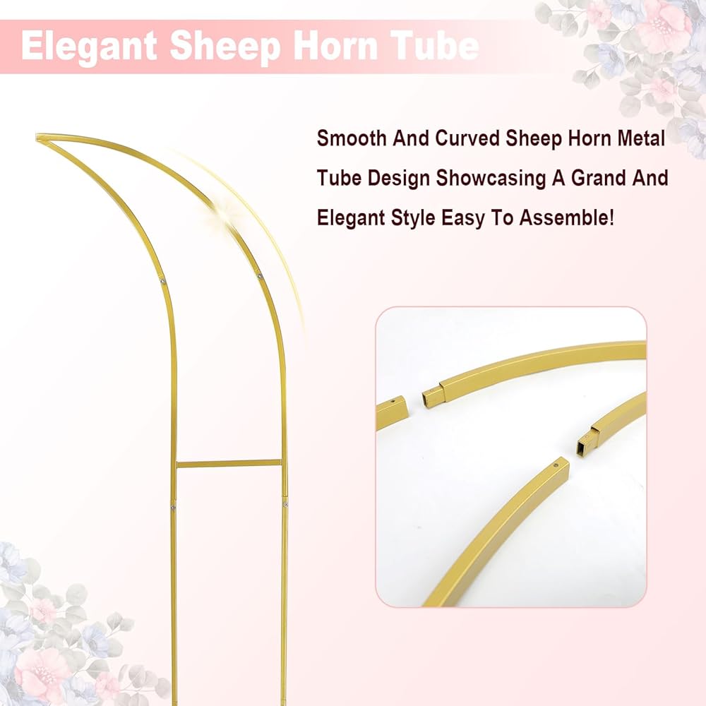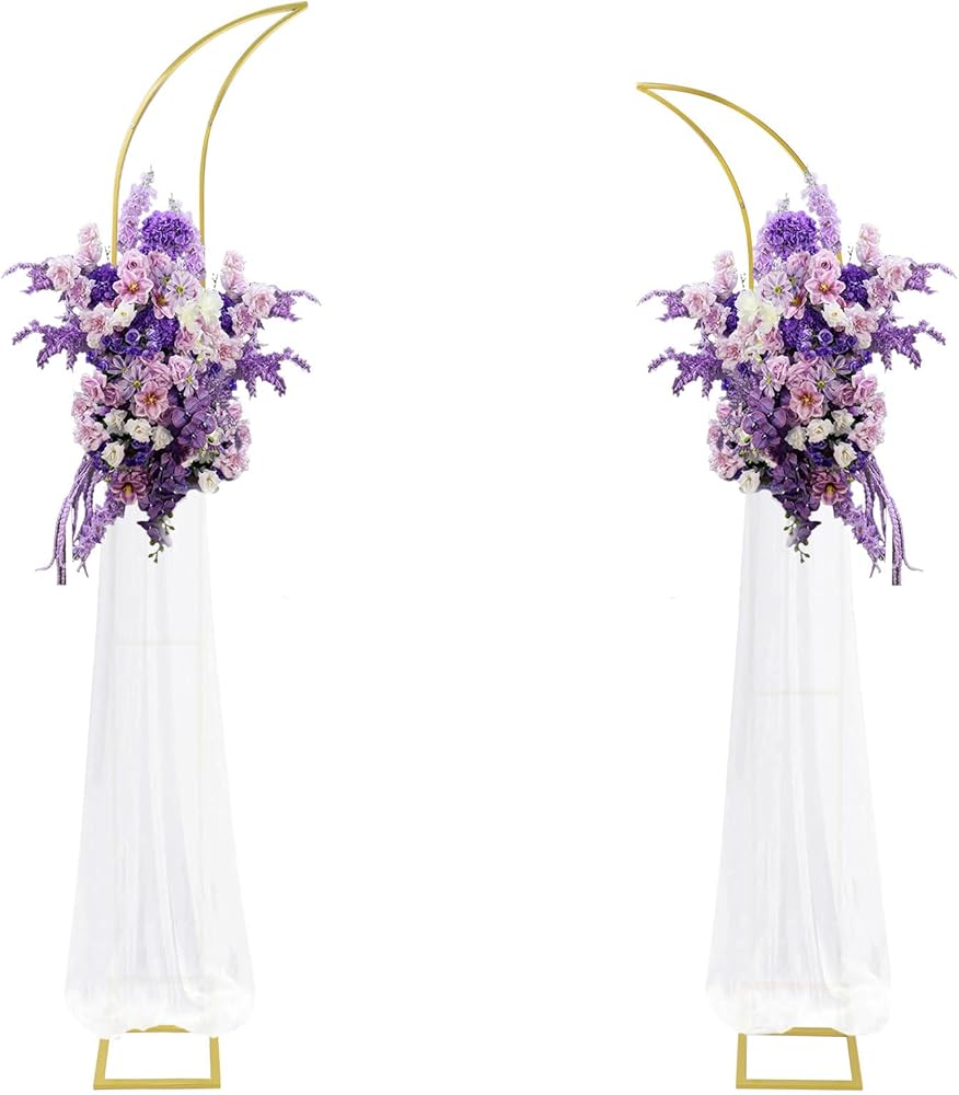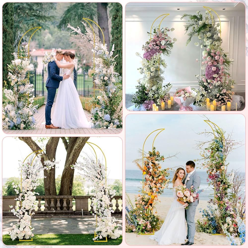 • 【التصميم الرائع】 يختلف عن أقواس الزفاف المستديرة والمربعة العادية ، يتكون حامل قوس الزهور لدينا من أقواس من ارتفاعات مختلفة ، مع تصميم هلال فريد من نوعه ونادرة وتصميم شبه مفتوح ، والذي يمكنه ضبط زاوية قوس الزفاف بمرونة ، ويظهر أناقة و Grandeur.