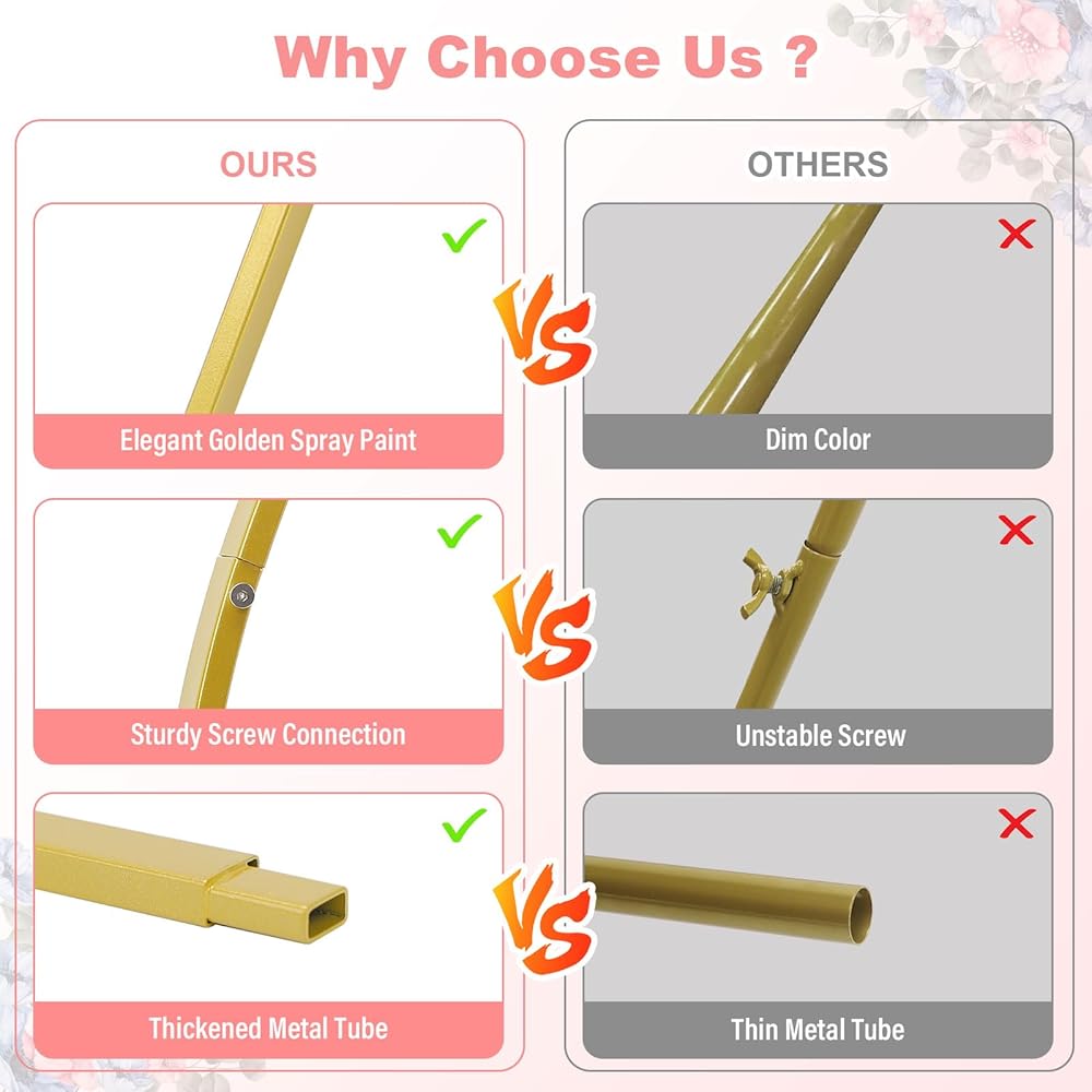 • 【شملت الحزمة】 ستتلقى زوجًا من حامل قوس الزهور (6.53 قدم و 6.9 قدم) ودليل التثبيت. سيجعل حامل خلفية القوس الرائع والأنيق حفل زفافك محور المكان بأكمله ، مما يتركك بذكريات جميلة ولا تنسى!