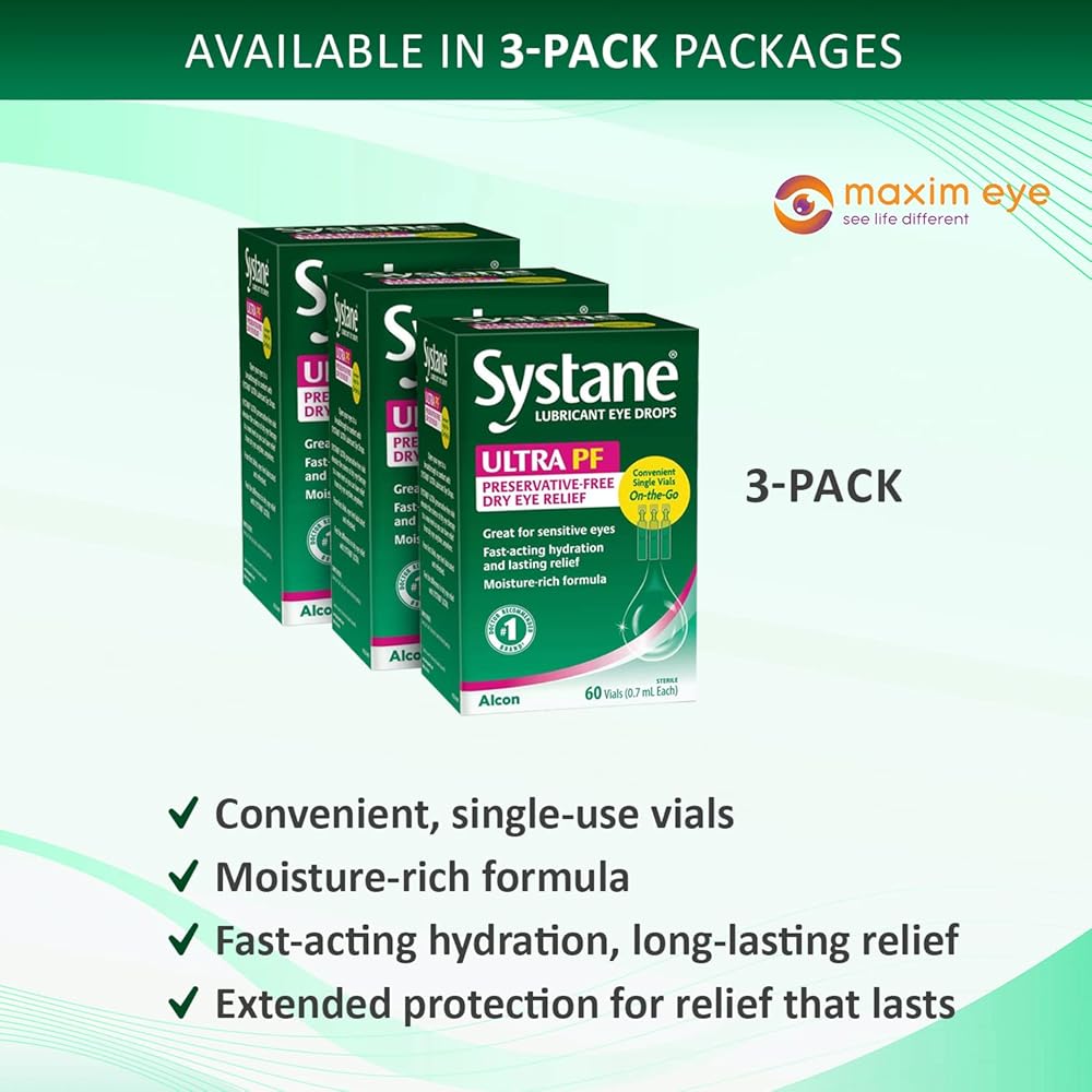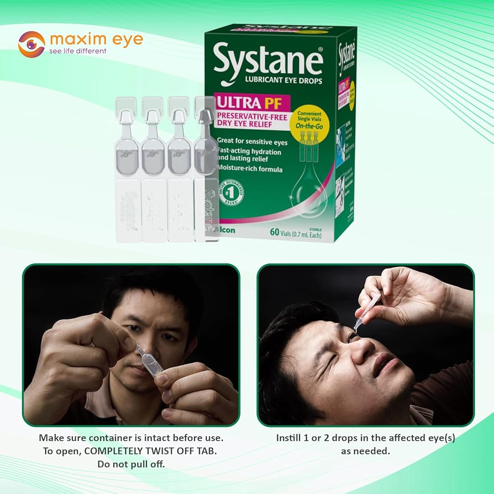 صندوقان يحتويان على 60 قارورة تستخدم لمرة واحدة من قطرات العين فائقة التزليق وخالية من المواد الحافظة. إنها العلامة التجارية رقم 1 التي يوصي بها الأطباء للدموع الاصطناعية.