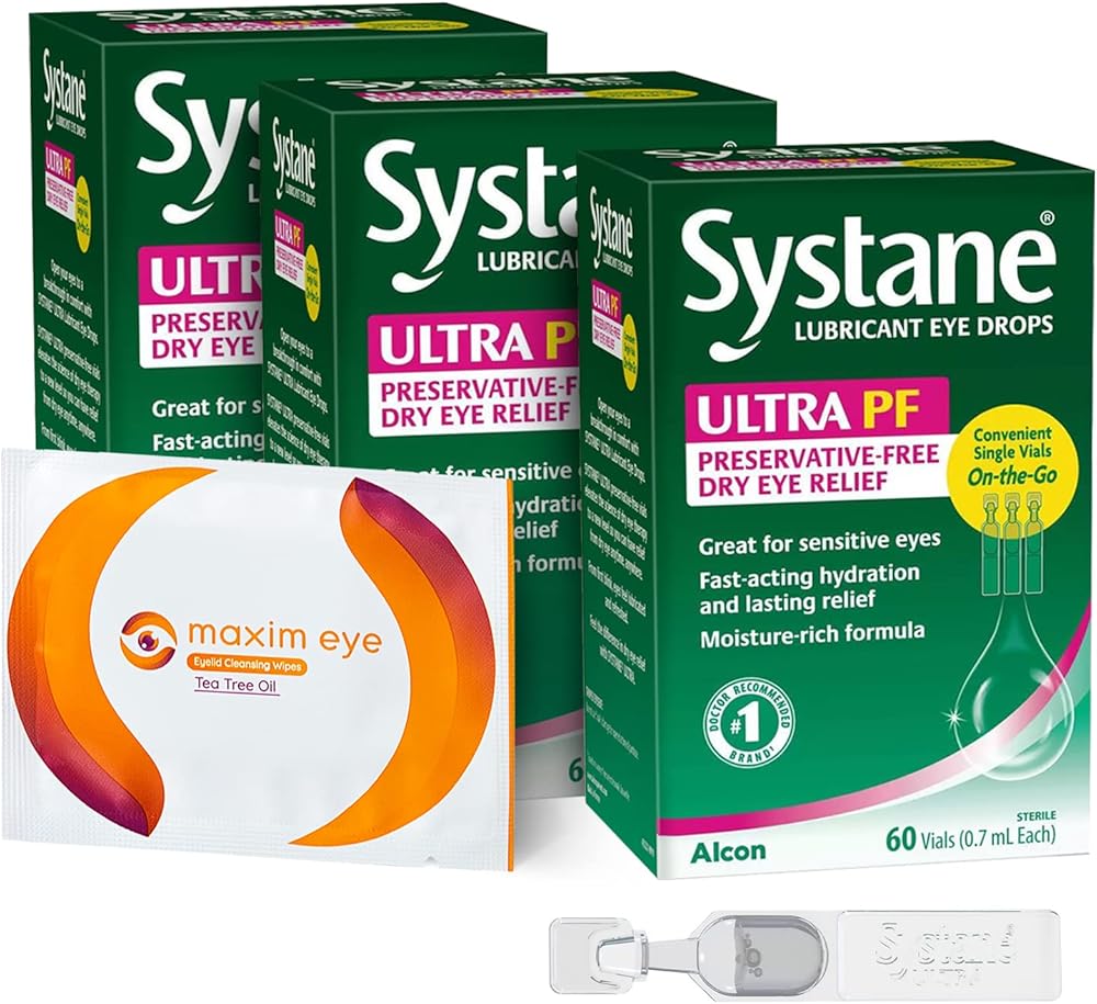علبتان من قطرات العين المرطبة للغاية للعيون الجافة ومناديل مسح العين بزيت شجرة الشاي!
