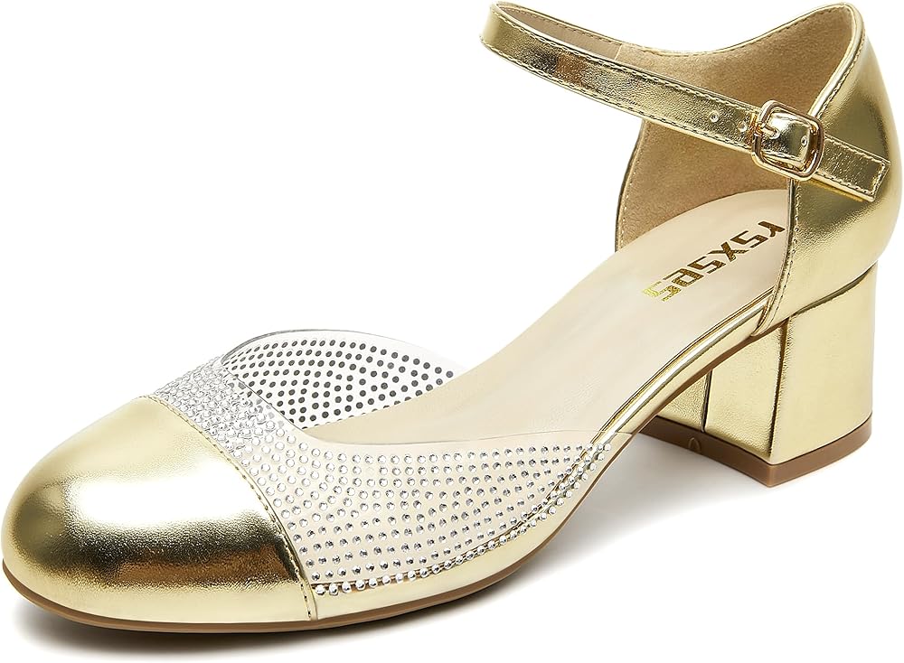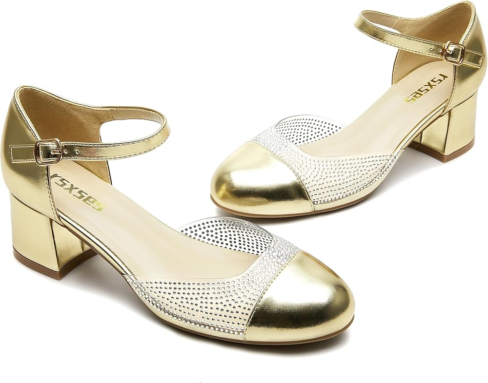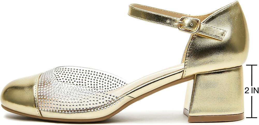 Step into Style and Comfort with Our Women's Low Heel Pumps! Elevate your wardrobe with these stunning Women's Low Heel Pumps, designed to combine elegance, comfort, and versatility. Featuring a dazzling rhinestone-adorned ankle strap, these shoes add a touch of glamour to any outfit, making them perfect for both professional settings and special occasions. The chunky block heel offers exceptional stability and support, ensuring all-day comfort without sacrificing style. The adjustable ankle strap provides a secure, customized fit, while the closed round toe delivers a timeless, polished look that pairs effortlessly with dresses, skirts, or jeans. Whether you're heading to the office, a dinner date, or a casual outing, these pumps are your go-to choice for a chic and confident stride. Upgrade your shoe collection today and experience the perfect blend of fashion and function!
